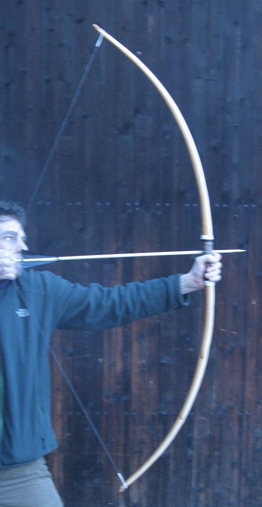 Bogen von Blacky, der vorbildlich ist. Wahrscheinlich könnte man bei meinem Bogen ein oder zwei Zoll mehr Auszug wagen.