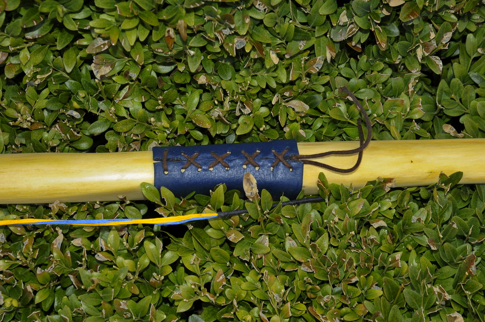 das Griffleder, am Rücken befestigt mit einem Lederband.
