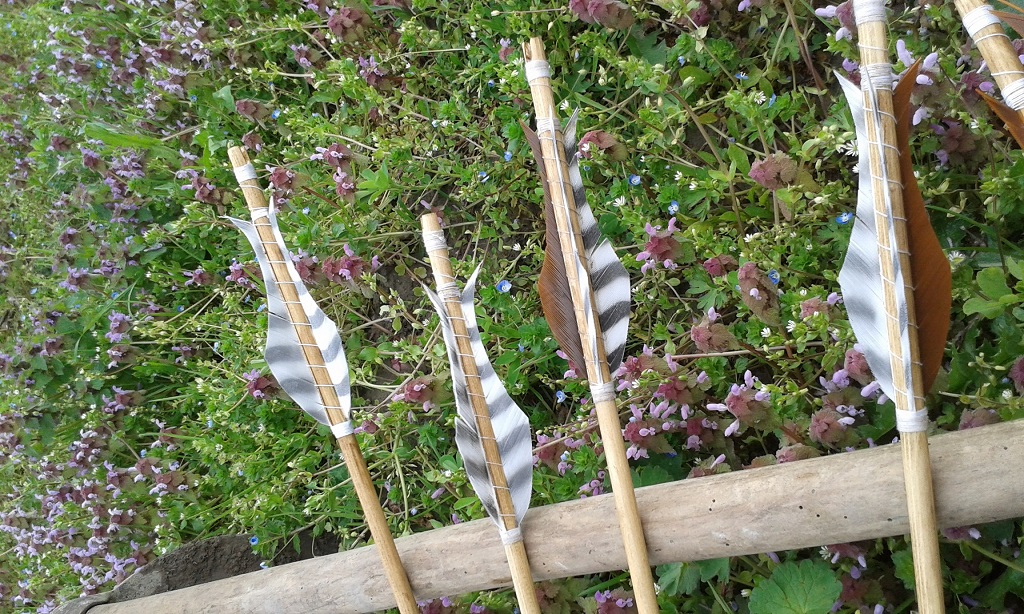 ich würde gerne meine ersten selbstgebauten Pfeile präsentieren, ich wollte Mittelalterpfeile bauen, allerdings habe ich Feldspitzen verwendet, weil ich dachte, dass die bestimmt aus Zielen wieder leichter herauszuziehen sind.