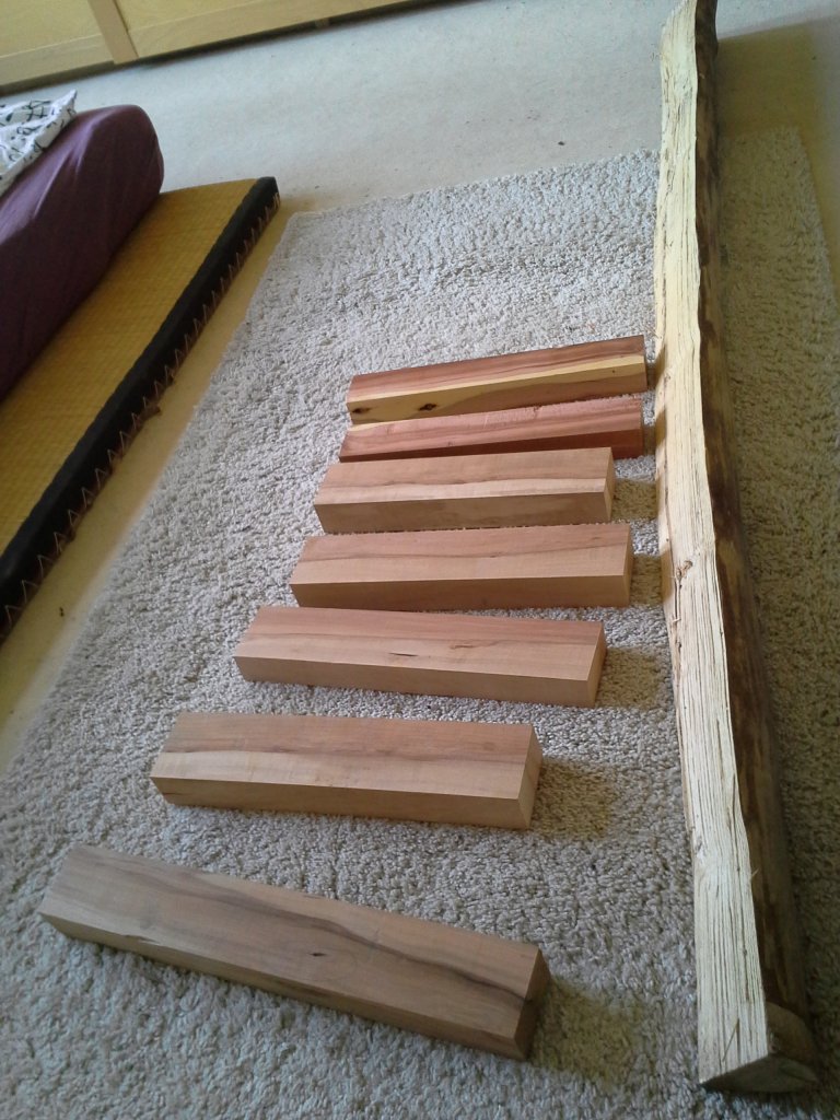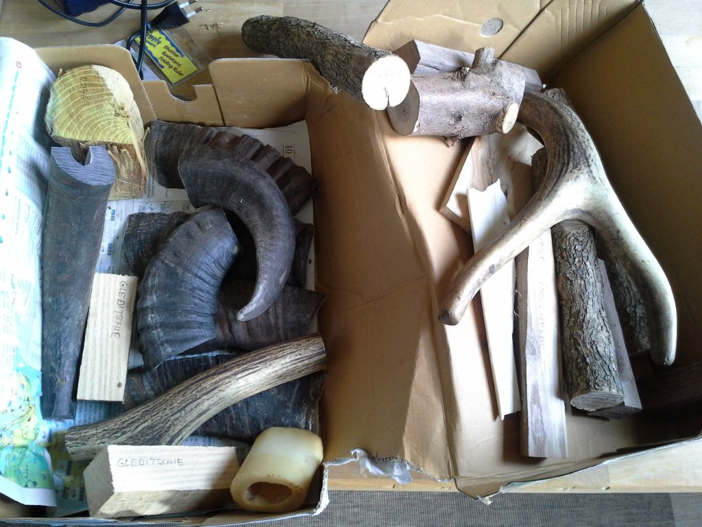 Der eine, muß irgendwas mit Holzbearbeitung zu tun haben, hat die mit einem dann als ganz fein entpuppten Eschenstave zusammen bestellten Kanteln wegen vermeintlicher Maßunstimmigkeiten einfach mal eben verdoppelt... Und bei dem anderen (baut Axtstile aus Goldregen, weitere Beweise für Wahnsinn nötig?) war ein Kantel Schwarznuß übrig, den ich abgestaubt habe.
