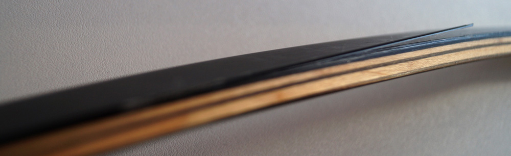 aber auf beiden seiten des wurfarms, und an beiden wurfarmen gleich versteht sich. damit ändern man nämlich den tiller und senkt das zuggewicht (so 2-5 lbs). danach fein schleifen, neu lackieren, fertig. kein größer akt. da hab ich schon weitaus schlimmere schäden behoben.