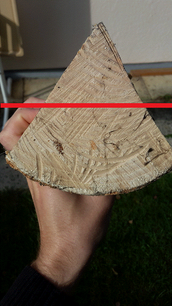 Servus, die Schnittfläche schön glatt schleifen und ein Massstab dazu, dann kann man es besser beurteilen.