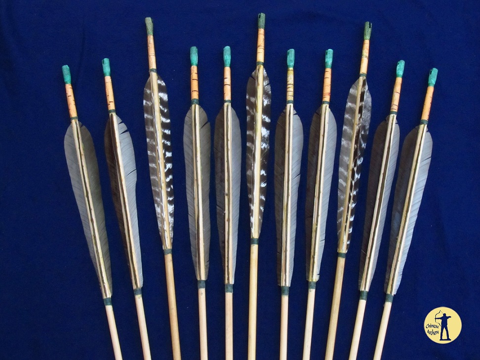 Holzpfeile im mandschurischen Stil für den Übungs- sowie Turnierbetrieb in Anlehnung an historische Vorbilder.