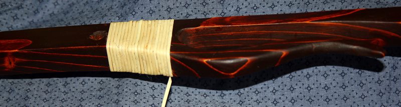 Nach dem fertigstellen des Holms und der Lasur geht es weiter mit der Rattan-Wicklung. Hier weiche ich absichtlich von der üblichen Wicklung ab. Die hier gezeigte Wicklung findet man an Japanischen Bögen , und hat mir gut gefallen -Japan möge mir verzeihen-und habe nach vielen Versuchen und Frust , herausbekommen wie es geht und hier am Köcher Holm angebracht. Das Rattan hat 2mm Durchmesser-hätte aber doch eher das mit 1,75mm nehmen sollen ,sieht einfach feiner aus- muß wohl noch einenen weiteren Köcher bauen.