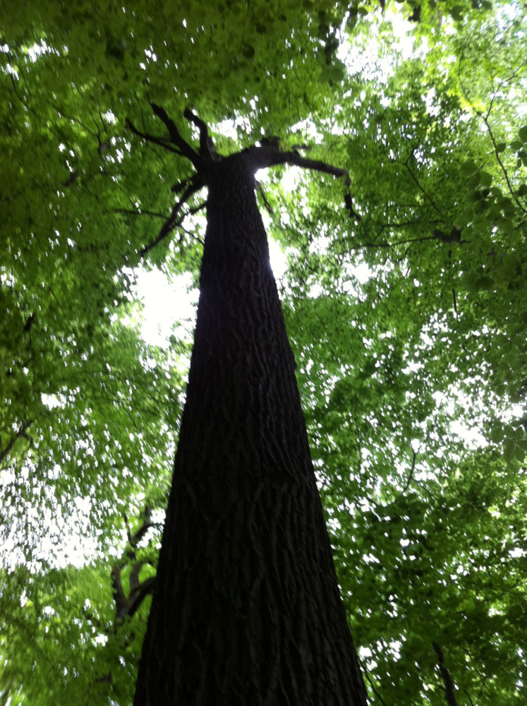 zu den Blättern ist es zu weit oben, daher nichts zu erkennen außer den gerade gewachsenen Stamm: