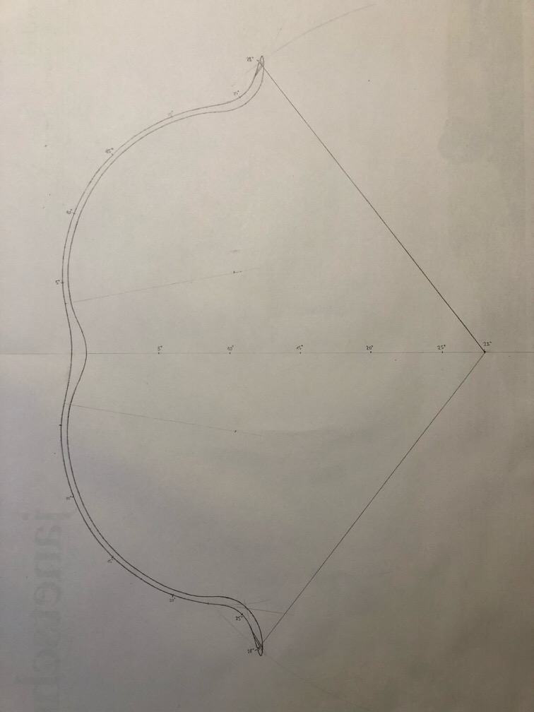 Der Wurfarm soll 32mm breit werden und zu den Tips auf 6mm auslaufen.