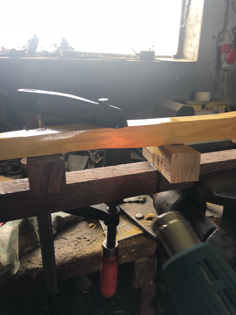 Ich hab dann mal begonnen den Stave mit dem HLF zu begradigen und im Anschluss die Recurves zu biegen.