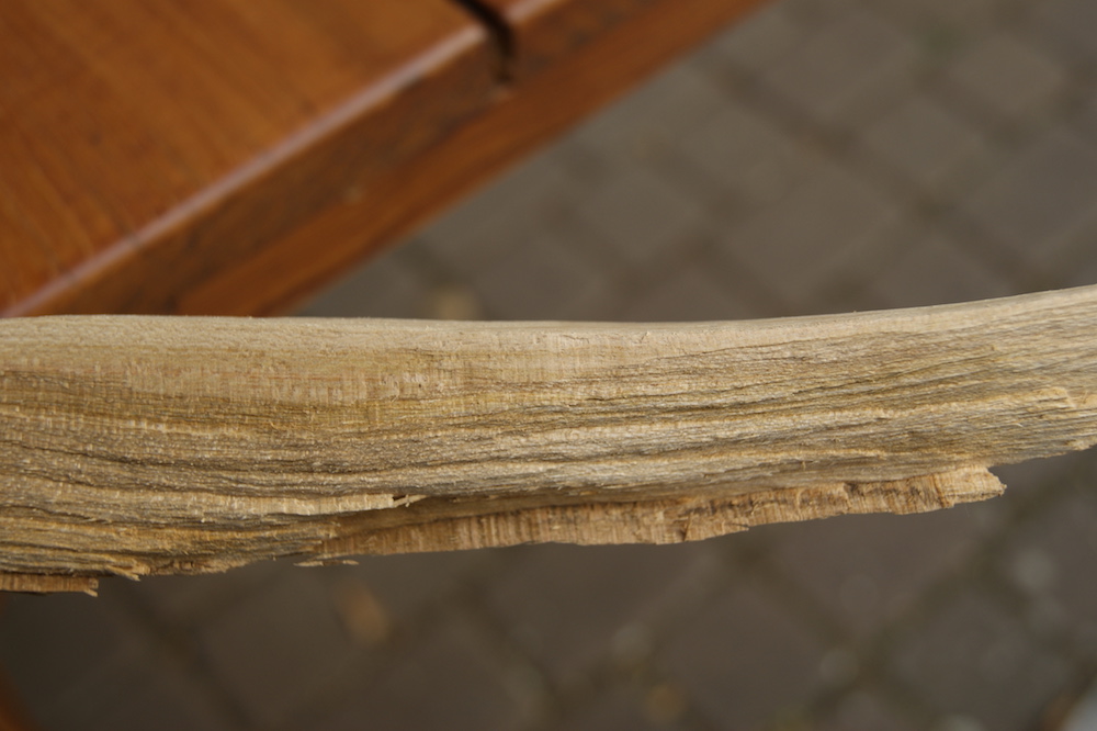 Jetzt möchten meine Tochter und ich erstmals davon einen Bogen bauen. Ich bin mir nur gar nicht sicher, ob das überhaupt geht. Laut dem Bauern soll der Baum rund 80-100 Jahre alt gewesen sein. Er war allerdings bereits gefällt, ich konnte den Stammumfang nur noch ahnen.