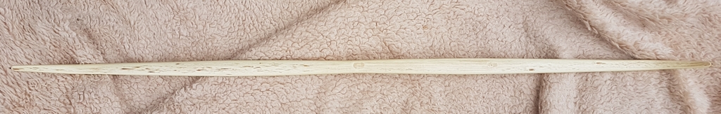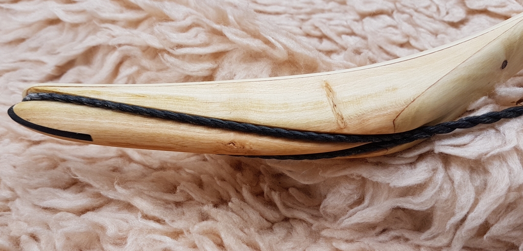 Allerdings nicht so viel, man muss bedenken, dass da ja die Sehnenkerben drin sind und die sind ca. 4-5 mm tief. Und die Sehnenführung funktioniert auf die Art sehr gut.