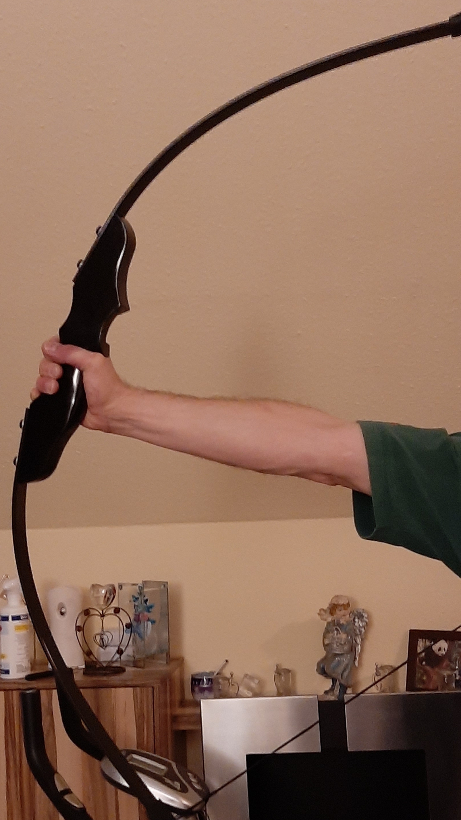 @JR.B die Frage nach der Länge des Bogens bleibt bestehen , ob mit oder ohne Plastik. Der Sehnen Winkel ändert sich dadurch nicht. Auf deinen Bildern war zu sehen , dass der Sehnen Winkel bereits bei ca. 26- 27Zoll Auszug 90 Grad erreichte. Wenn du ihn bis zum Mundwinkel ziehen willst, geht das mit dem Bogen nicht. Er kann höchstens mit fliegenden Anker geschossen werden. Das könntest du mit einem längeren Mittelteil ausgleichen. Daher auch meine Frage wie lang er ist