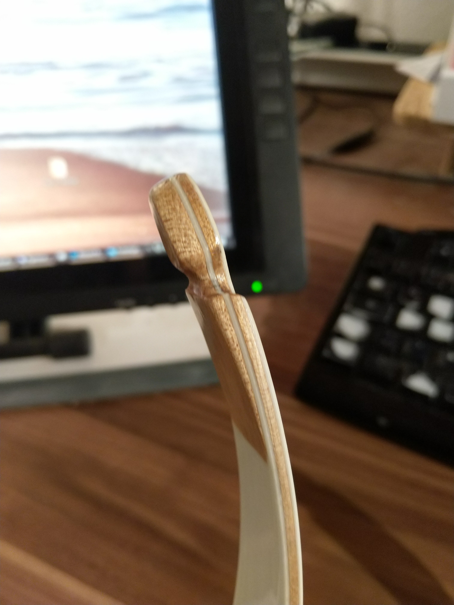 Hm.... zumindest hab ich einen Anhalts punkt zum nachschauen. Ich hab mir mal den Wurfarm, also die Aufnahme der Sehne angeschaut, die Sehne hat einen ziemlichen "Eindruck" am Holz hinterlassen, also zumindest mehr als ich erwarten würde. Am Oberen Wurfarm sit dagegen alles i.O.