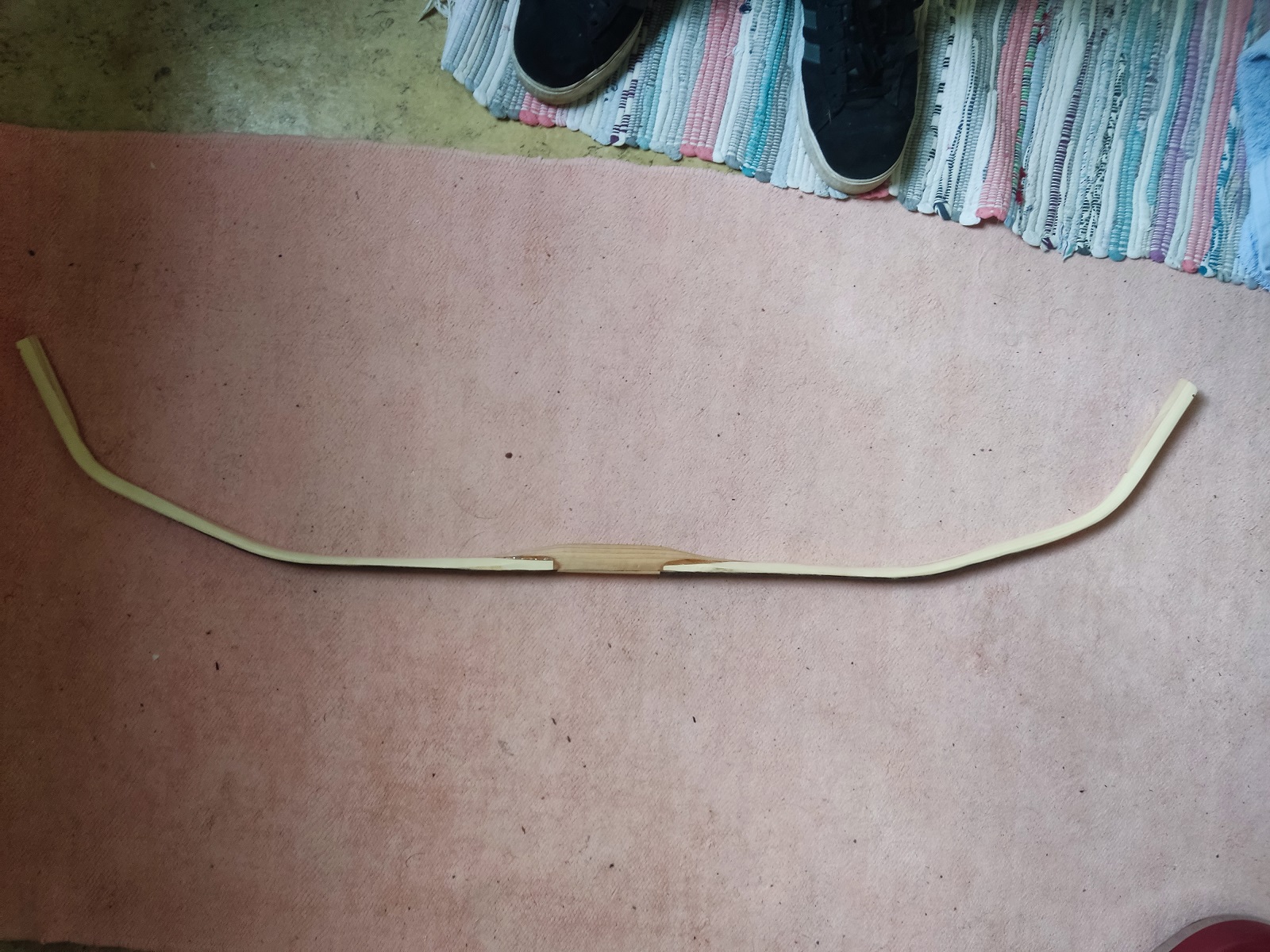 Aus Angst durch noch mehr Hitze mehr Schaden als Nutzen zu haben, habe ich einfach angefangen zu tillern. Ausziehen ließ sich der Bogen, auch ohne dass die Sehne runtergesprungen wäre. Mitte Februar hatte ich den Bogen dann endlich auf dem Tillerstock.