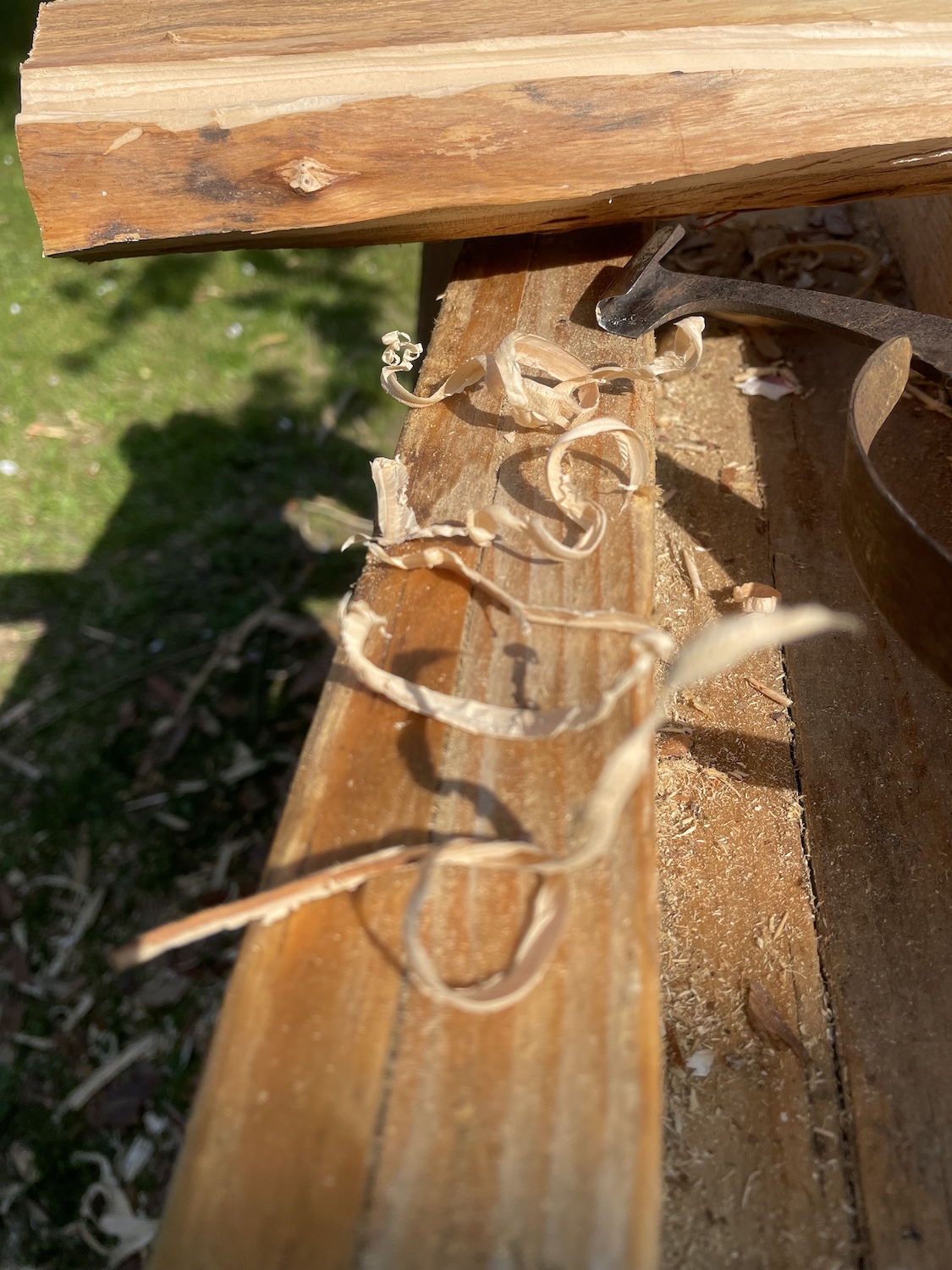 Ich hoffe der Spantest wird als gültig anerkannt, da die ersten mit dem Ziehmesser genommenen Späne von den abgetrennten Enden stammten und allesamt etwas zerbröselt sind.