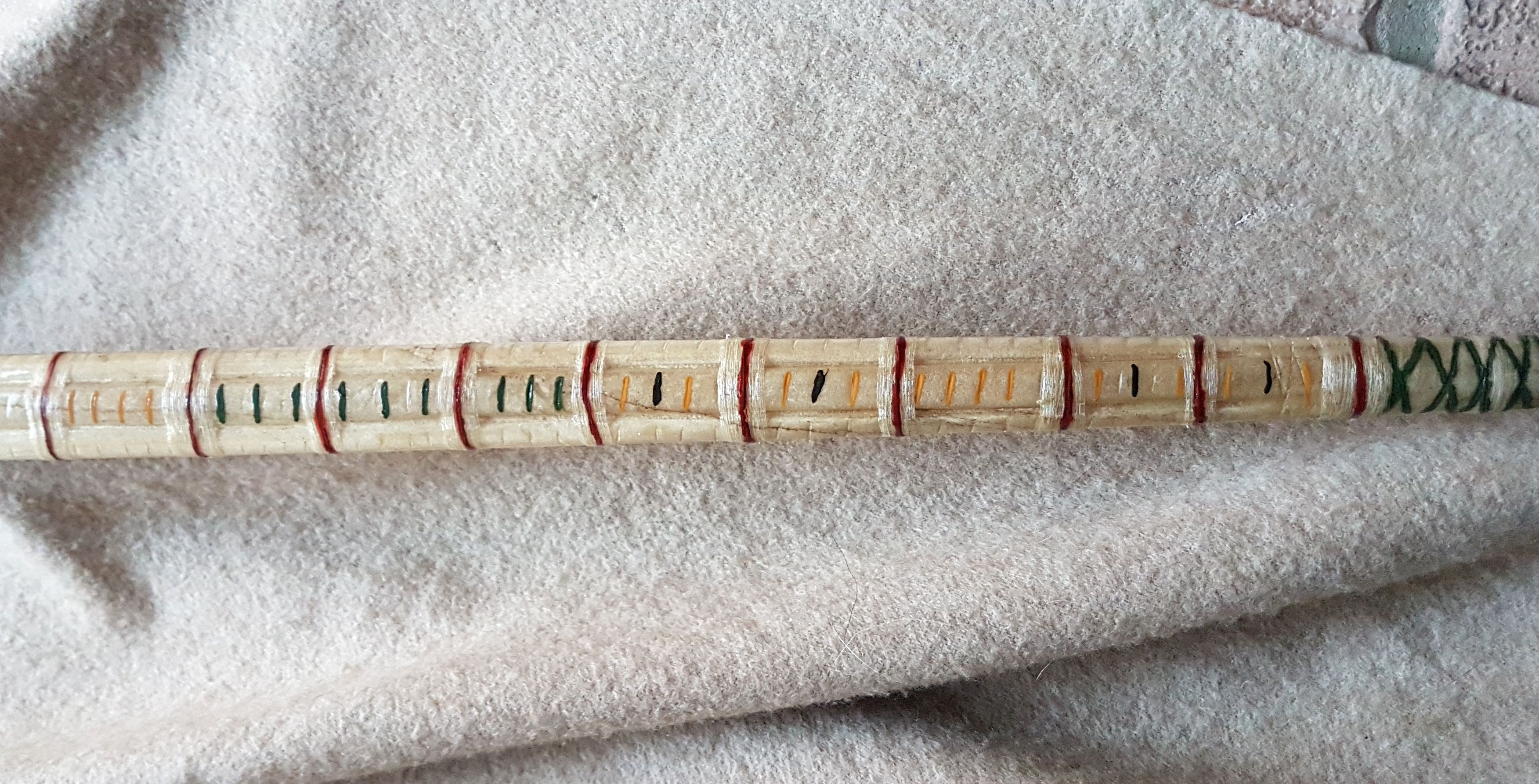 Hasel/Kirschpflaume mit partiellem Sehnenbacking (geklebt mit Fisch-Kaltleim) und Rohhautbacking)
