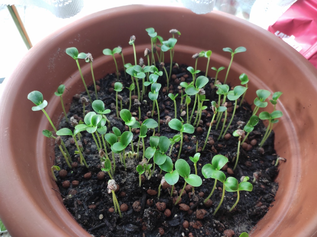 Inzwischen haben ordentliche viele gekeimt, 70 (von 105) in der Anzuchtschale und 106 im Topf (von unbekannt vielen)