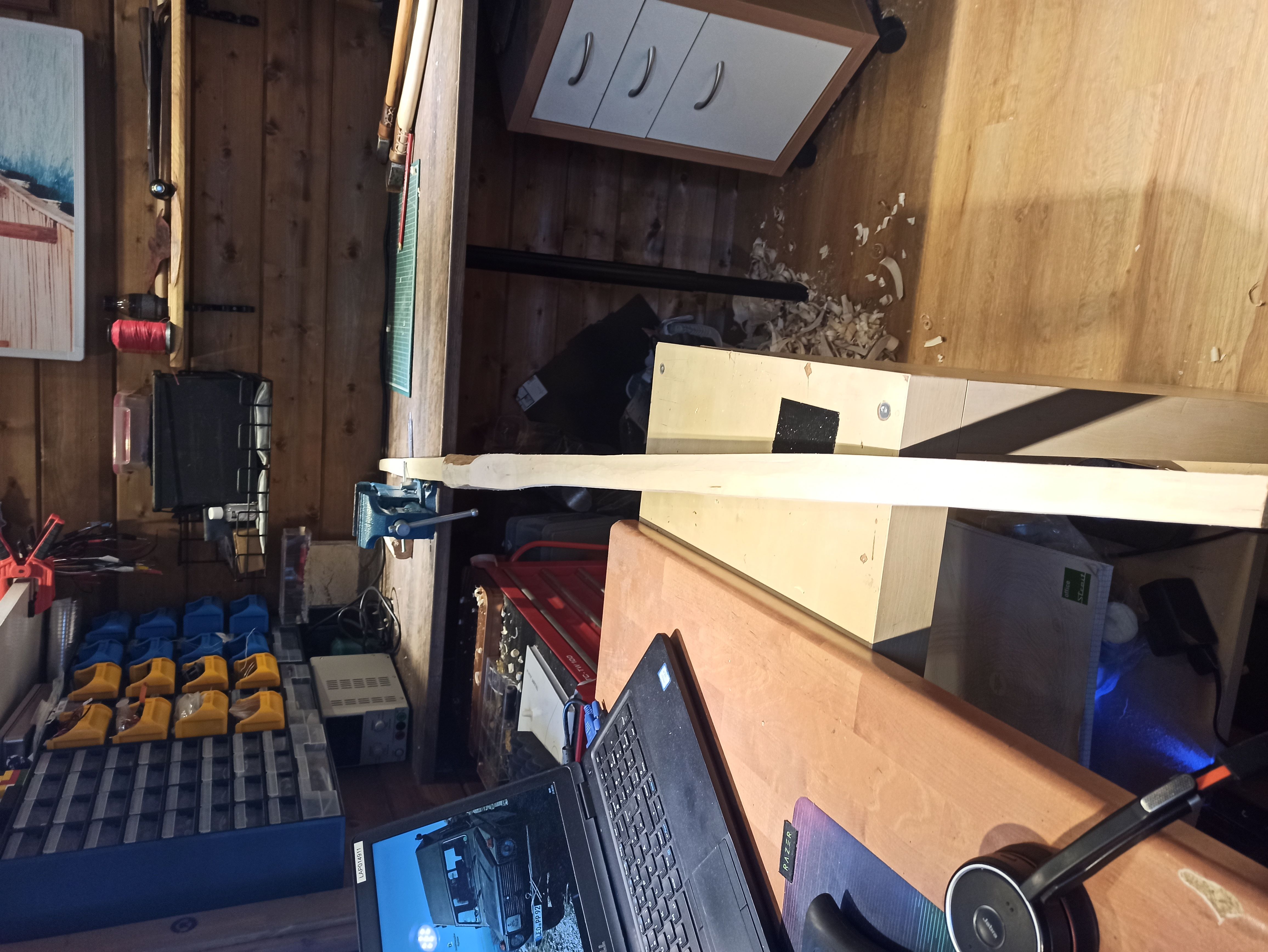 So nachdem mir meine Axt, beim aus der Hand rutschen, den rechten Zeigefinger einmal oben am Gelenk ausgeschnitten hat, geht es heute nach Genesung weiter. Jetzt ist das Holz wenigstens Furztrocken. Hier mal der Stand: