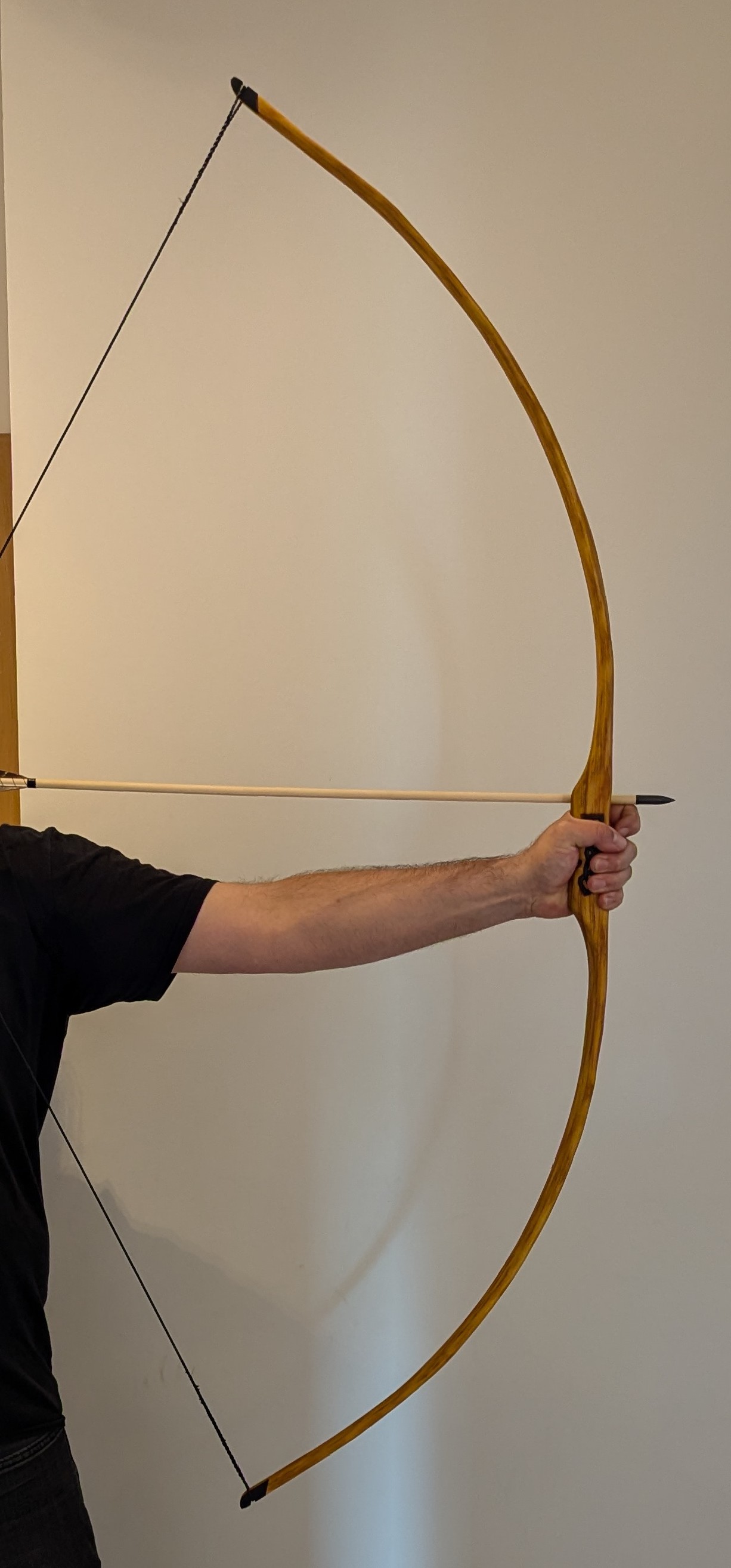 Die Nocken habe ich eher auf Sicherheit als auf möglichst geringes Gewicht gebaut. Insgesamt sind die ca 9 mm Dick, 5 mm Holz plus 2 mm Horn auf jeder Seite. Ich denke man kann solche Nocken auch noch ein paar mm schmaler Bauen. Ob man die aber so dünn bekommt wie mit einem Overlay würde ich eher bezweifeln. Mit meinen 7,7gpp Pfeilen schießt der Bogen gefühlt aber Recht flott.