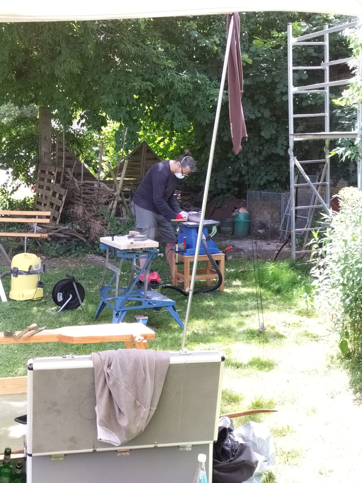 Theron und Niels haben fast das ganze Treffen an den Schleifmaschinen verbracht.