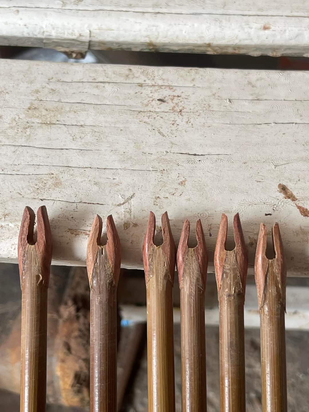 Wenn ich das richtig sehe, dann sind das Bambuspfeile. Ich würde, um die Klebefläche zu vergrößern, dem Bambus am Ende zuerst einen Holz- oder Bambusdübel einsetzen, die seitlich angeklebten Holzstücke müssen nach dem Verschleifen mit einer Sehne oder Faden gewickelt werden, sonst werden diese beim Schießen Abblatzen, ansonsten schöne osmanische Nocken, wie Neumi schon sagte, wir haben diese bei den Flightpfeilen verwendet. LG Stephan