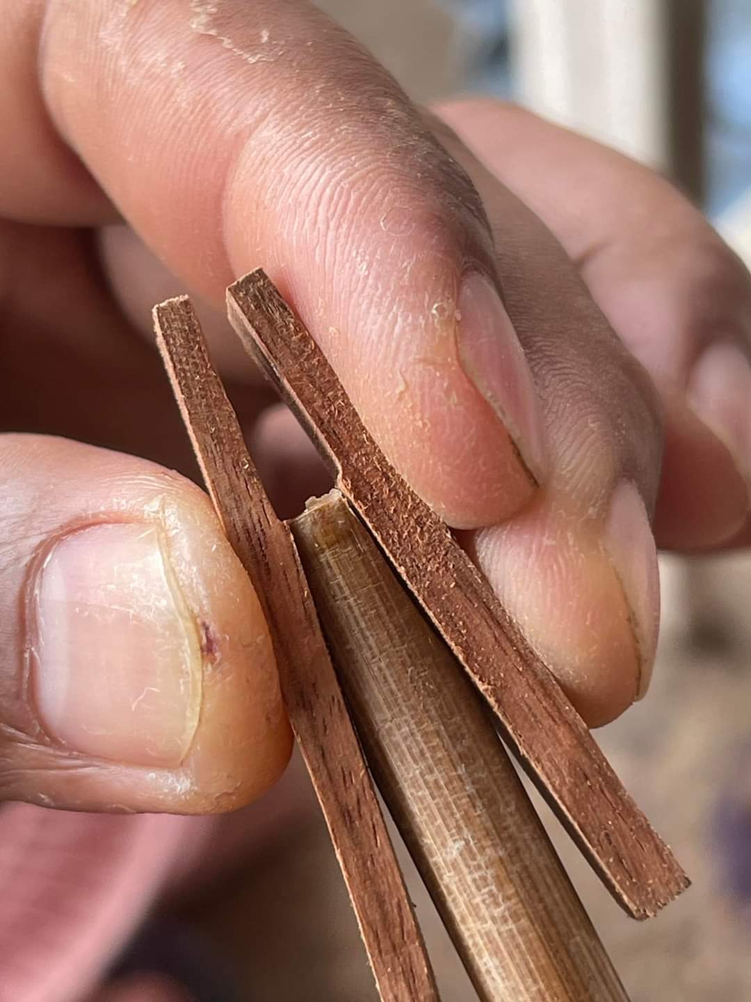 Kleine Waldelfen, die versuchen, unter dem Bast Schneeflocken ins Holz zu schnitzen?.....🥰🧚‍♀️ Benedikt