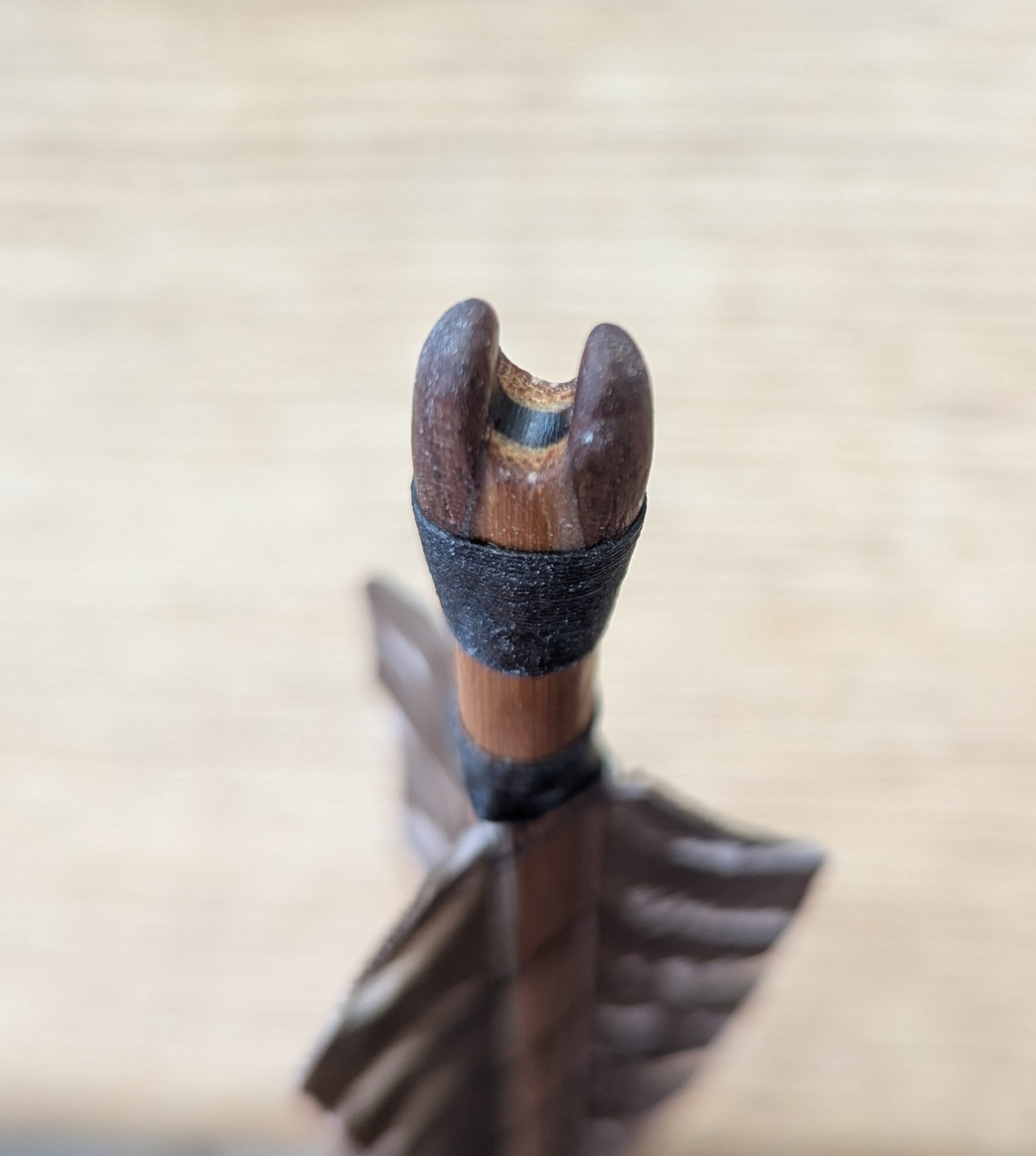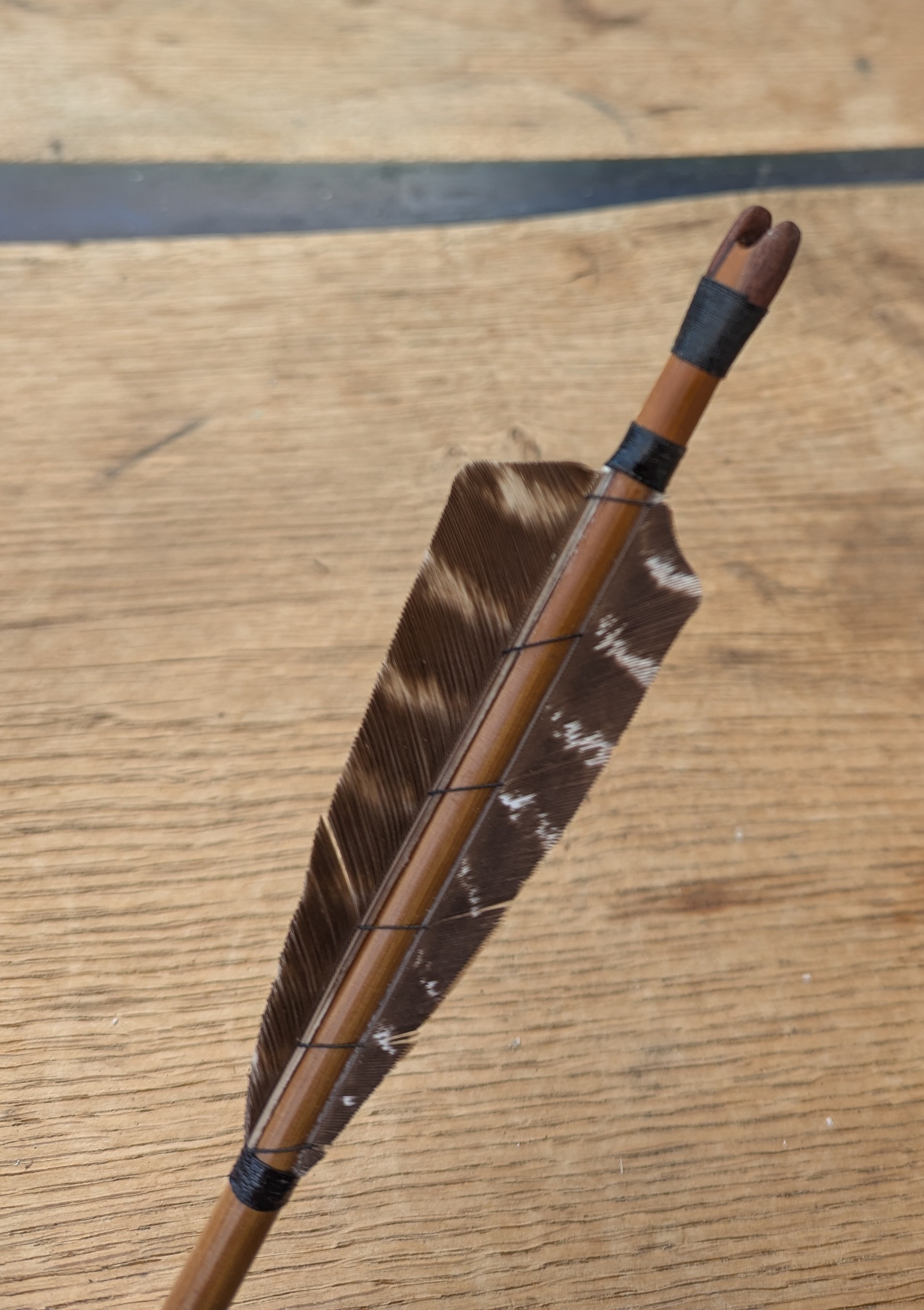 Ich habe für meinen (bald fertigen) Horn Komposit Bogen mal einen Probe Pfeil nach dem Vorbild gebaut. Der Test steht noch aus, aber optisch find ich find ich den Recht hübsch.
