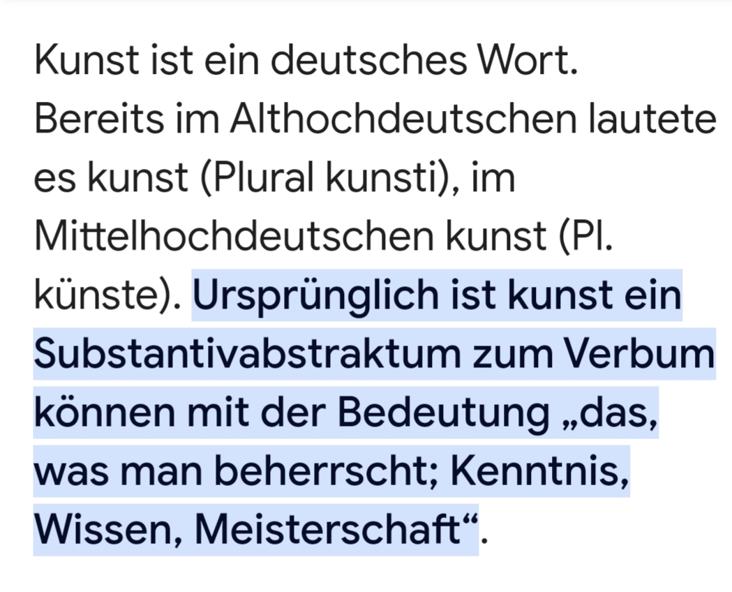 Zunächst finde ich es wichtig die benutzten Wortbedeutungen auf einen gemeinsamen Nenner zu bringen: deswegen hier zunächst "Kunst" ( der Einfachheit halber aus Wikipedia).