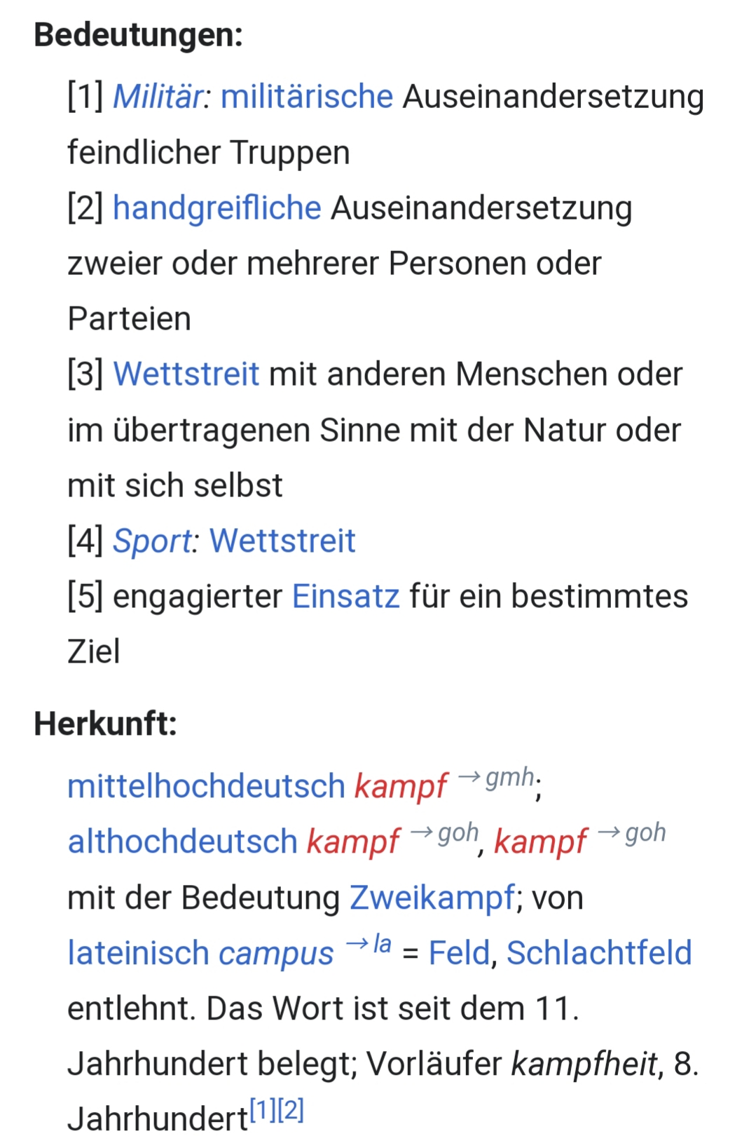 Spannend finde ich, dass Wikipedia bei "Kampf" unter 3 "mit sich selbst" aufführt...
