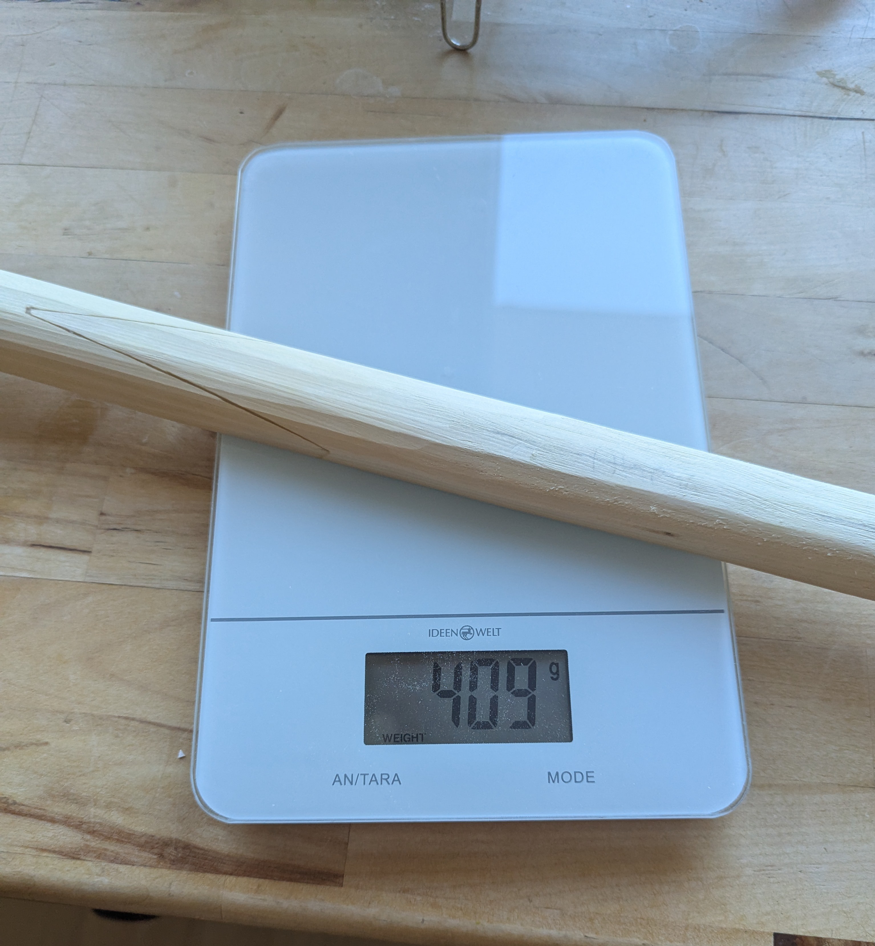 Jetzt stehen beide Stücke bei 20° und 55% bis 60% Luftfeuchtigkeit in der Wohnung um fertig zu trocknen. Ich glaube aber das es nicht mehr all zu lange dauern wird. Beide Hölzer haben sich beim Bearbeiten schon Recht gut angefühlt. Den Griff würde ich gerne leicht mitbiegen lassen.