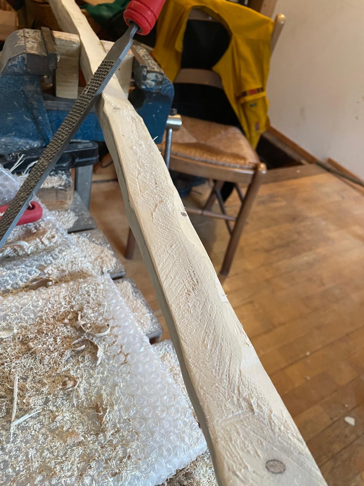 Ilex reißt leicht, daher schnell runterarbeiten bis zur Mitte und immer die Enden und Astlöcher neu versiegeln.