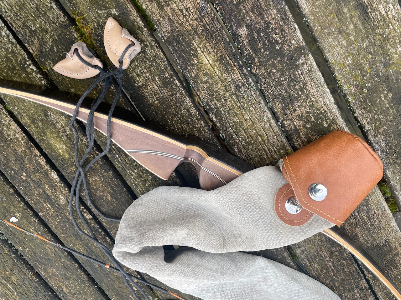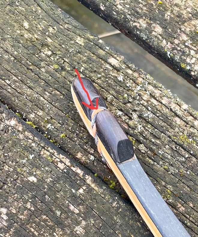 Den Griff habe ich so gestaltet, daß wenn ich den Bogen locker greife und den Zeigefinger ausstrecke, der Finger genau in einer Linie mit dem Pfeil liegt. Ich stelle mir vor, daß mir instinktives Schießen so einfacher fallen könnte.
