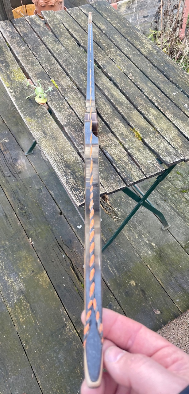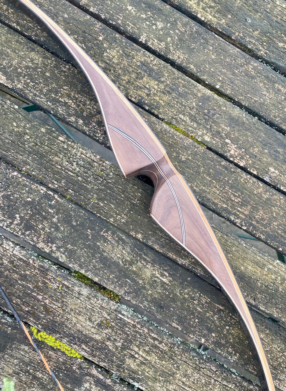 Ich habe ihn als Hybridbogen konzipiert, er hat also Reflex/Deflex und das Schussfenster ist auf Mitte geschnitten. Der tiefste Punkt der Handauflage ist exakt die Mitte des Bogens und der höchste Punkt der Pfeilauflage liegt direkt darüber.