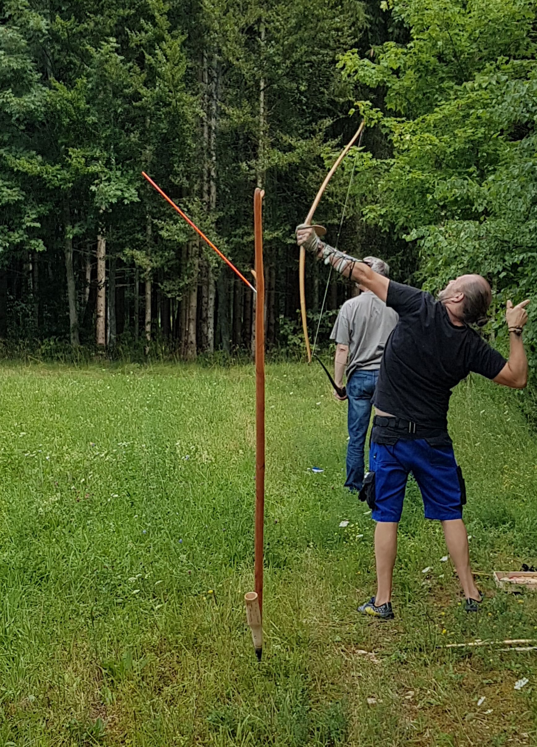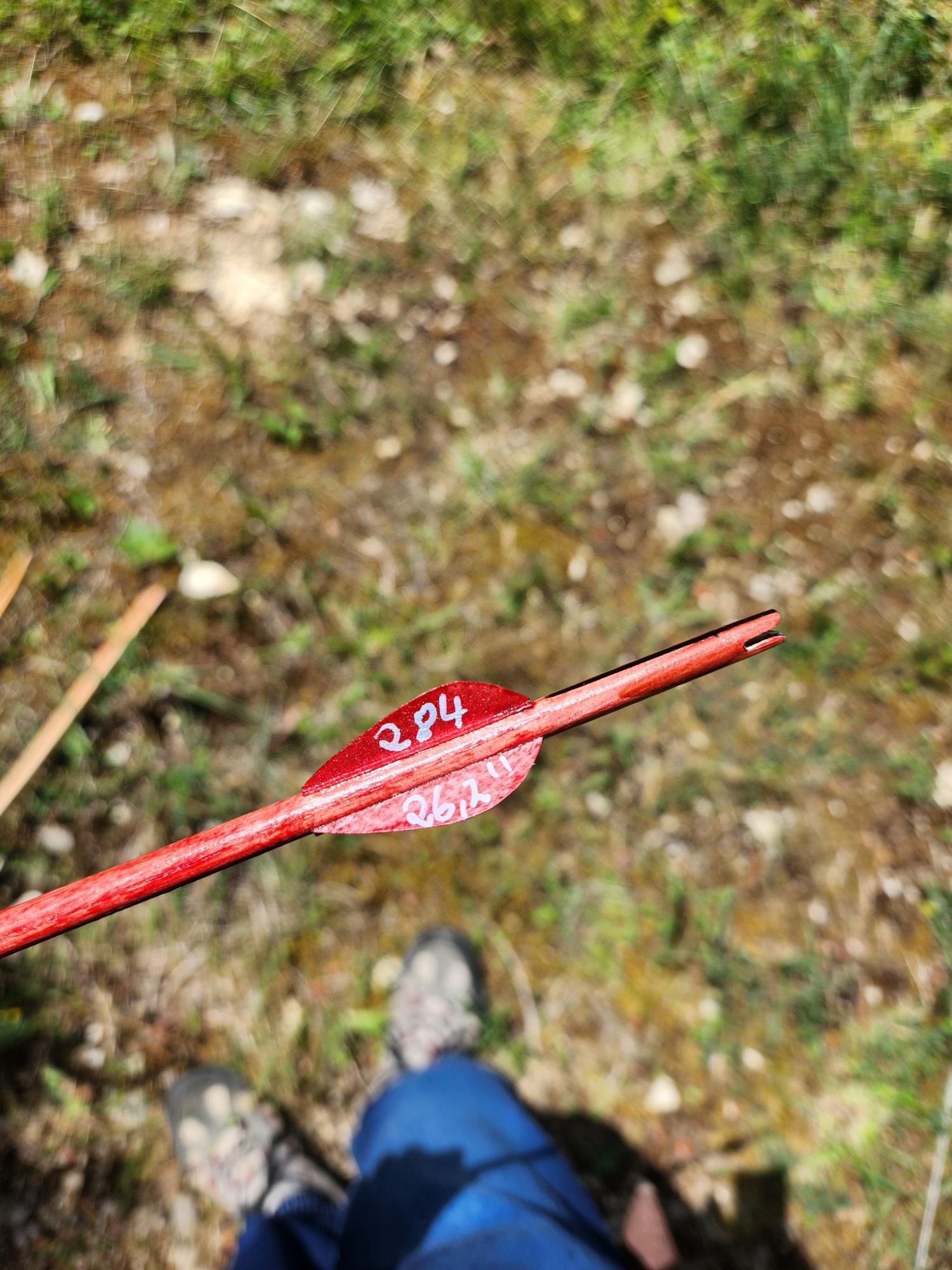 Am besten abgeschnitten hat aber tatsächlich mein Komposit mit meinem selbst gemachten Pfeil. Vermutlich wegen der hohen Auszugslänge von 29". Der flog mit 350 grain erstaunliche 303m. Der Bogen müsste um die 45-50# bei dem Auszug haben. Ich denke fürs nächste mal werd ich Pfeile mit der selben Länge machen, die aber einen stärkeren Tapper haben und somit bei gleichem Auszug leichter sind.