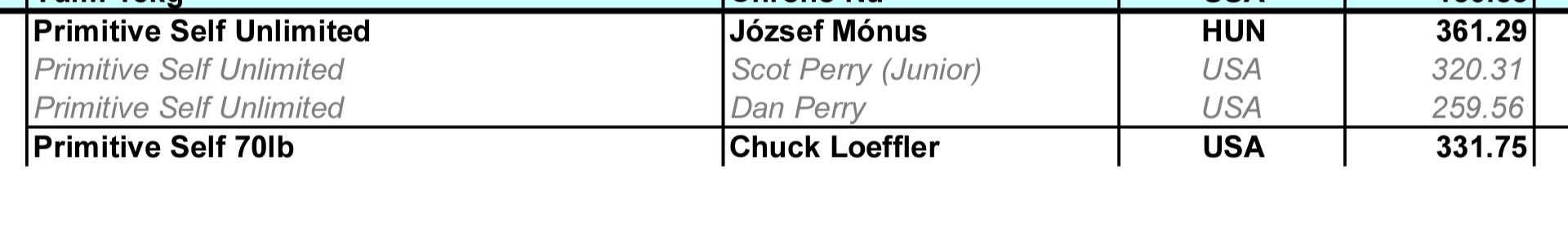 Nein, das war keine Überraschung - ich habe mit an 300 m gerechnet. Wenn man sich die Rekorweiten in den entsprechenden Bogenklassen anschaut, sind die Ergebnisse sogar hervorragend (allerdings benutze ich modernes Sehnenmaterial). Ich will aber die Rekorde bei 50# und 70# in den beiden Klassen knacken, soweit bin ich nicht entfernt