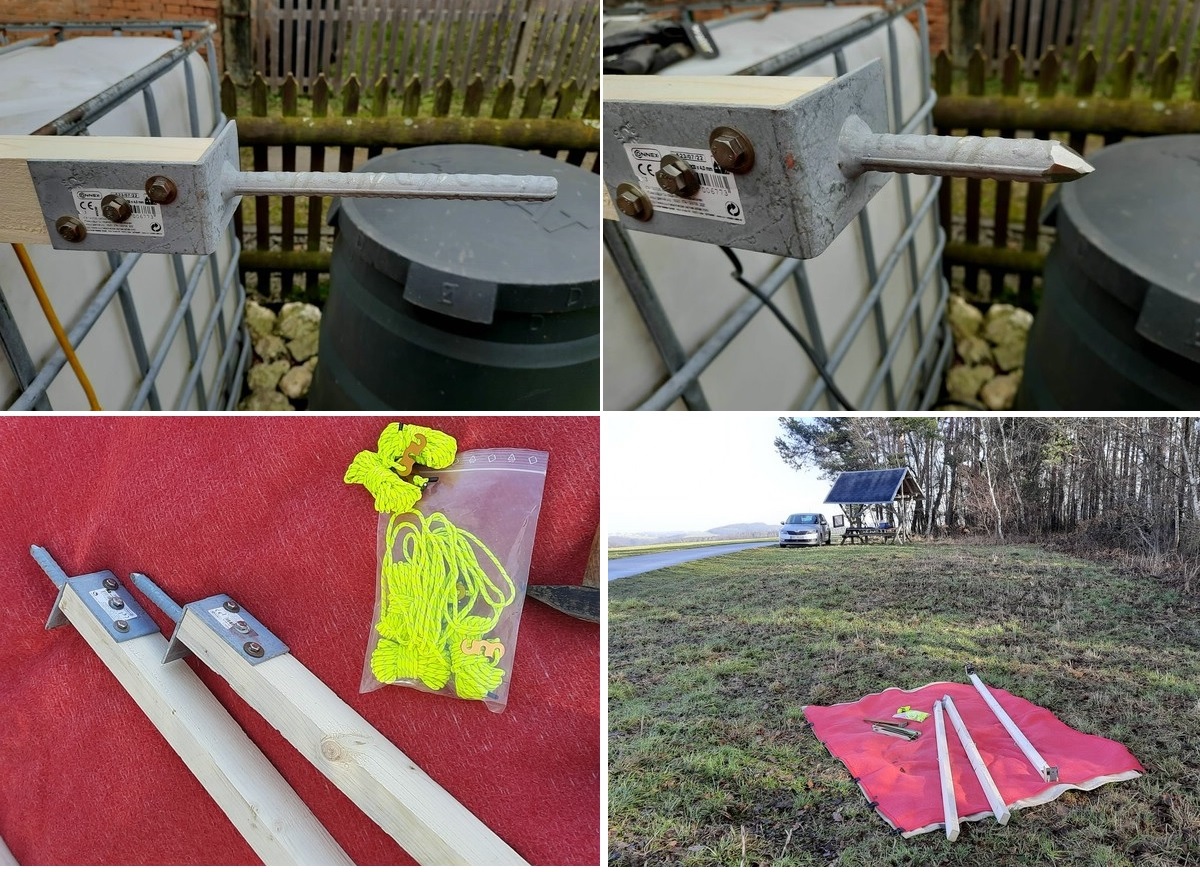 Immer nur im Garten auf 20 m Entfernung schießen wird langweilig. Der nächste 3D-Parcour ist 65 km weit weg, das kann ich allenfalls 2 - 4 mal im Jahr machen. Also musste eine Lösung her: eine eigene mobile Zielscheibenkonstruktion, die problemlos auf- und abbaubar ist und die ich auf Feld und Flur oder im Wald nutzen und mit dem Auto transportieren kann. Zum Aufbauen benötige ich nur einen Hammer für die Heringe, alles andere ist gesteckt.