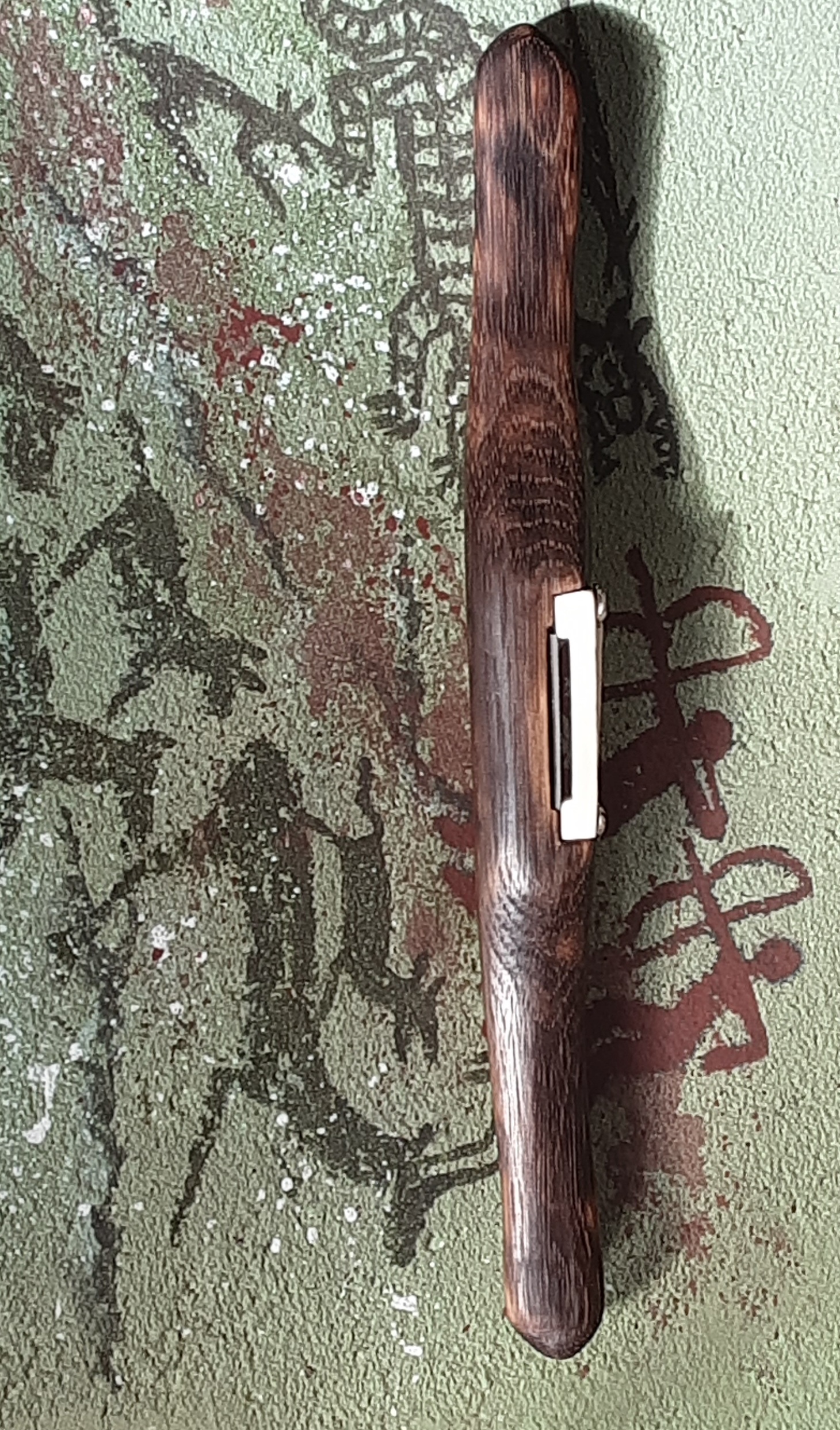 Und noch mal ein Modell mit einer etwas dickeren Klinge (3 mm). Die Ursprüngliche Fase von 25° ist im oberen Bereich auf 40° abgezogen. Die Klinge liess sich nicht wie eine Zieklinge schärfen, da sie zu hart ist. Es ist kein Grat angezogen. Schneiden bzw, Schaben macht das Teil wie ne Eins.