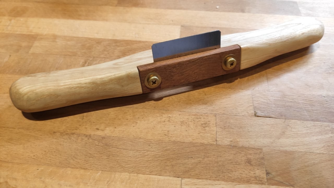 Servus, sieht gut aus. Ich habe eine alte Klinge von einem billigen Einhandhobel genommen, die gibt es oft billig am Flohmarkt.