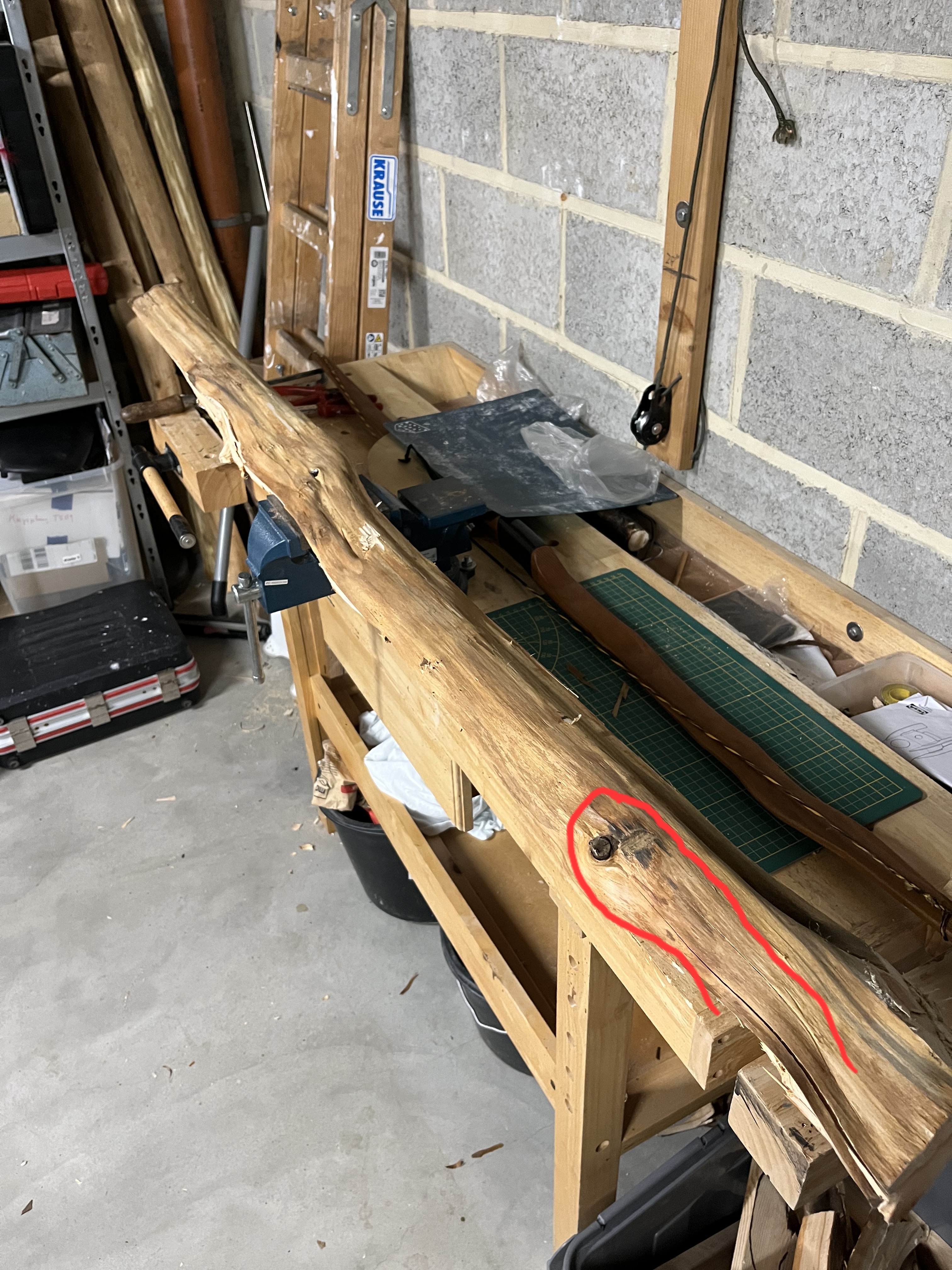Bei dem Stück Eibe wäre ich froh überhaupt einen Bogen reinlegen zu können... zwei Äste in den Hauptbiege Bereichen.. breite Splintholz Ringe..schwierig einzuschätzendes Druckholz.. typische graue Verfärbung im Übergang von Splint zum Kern...