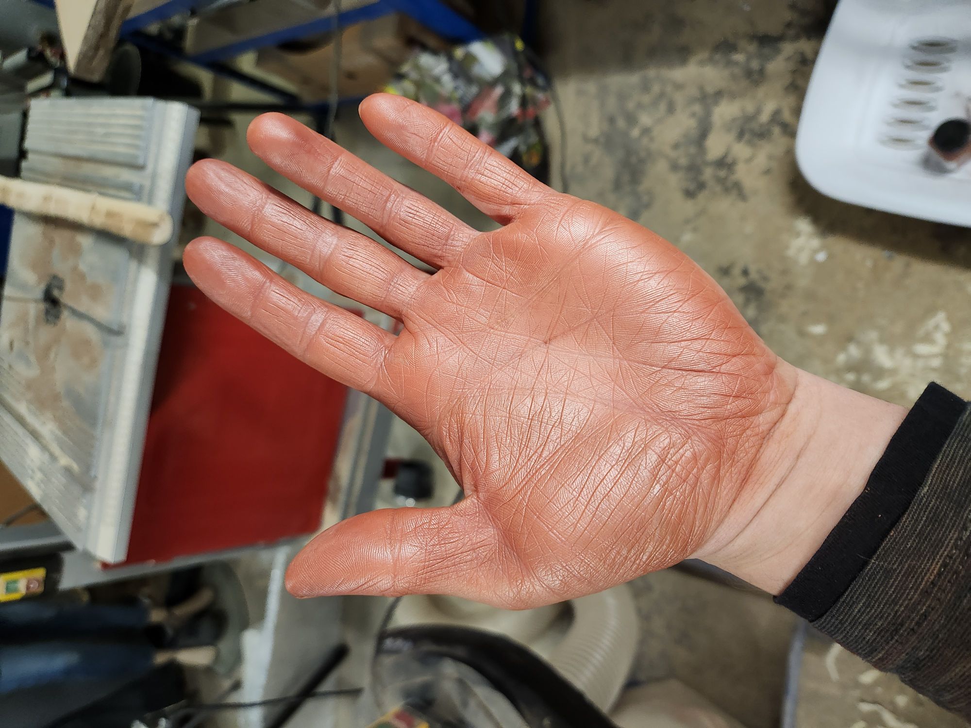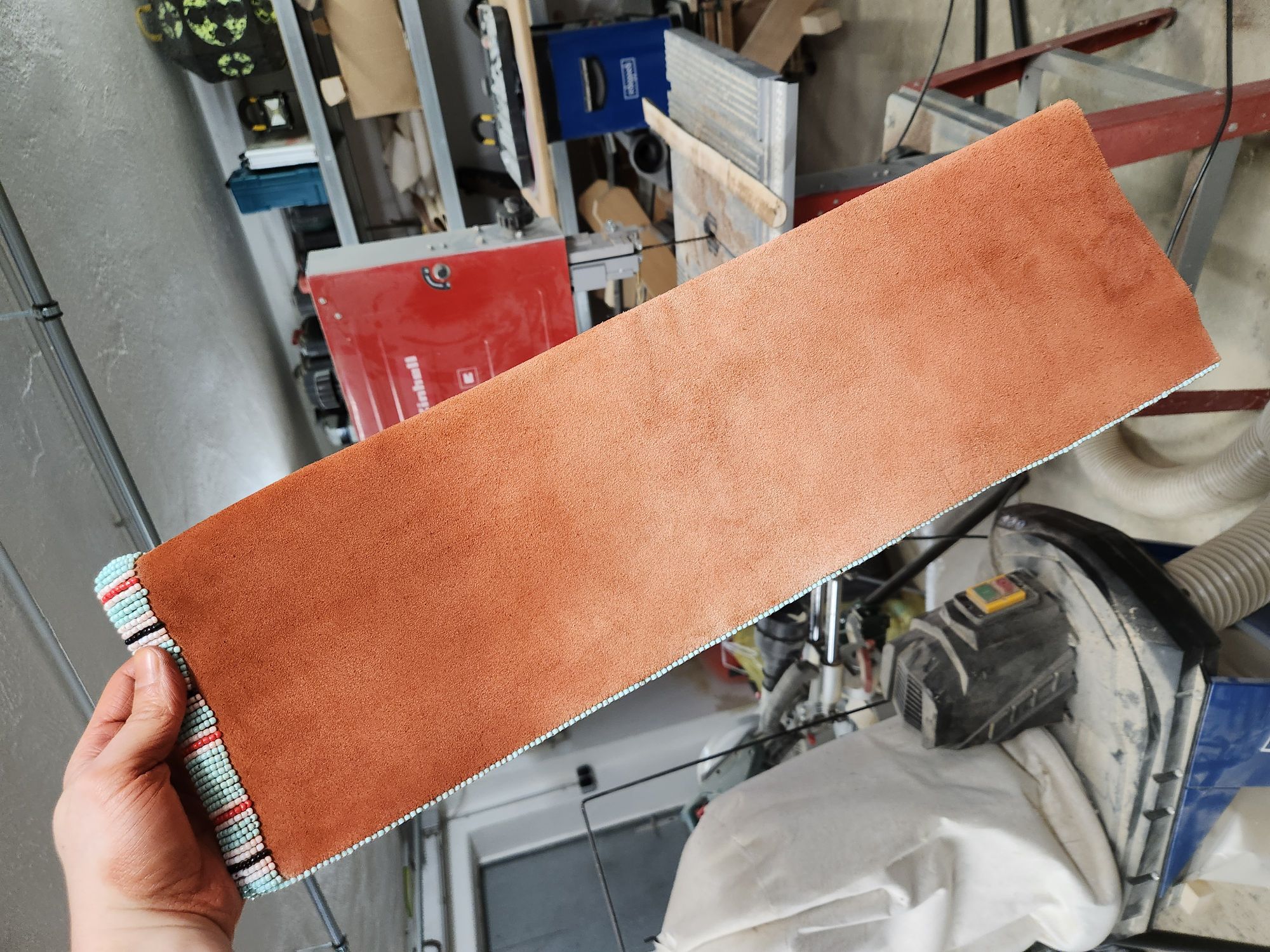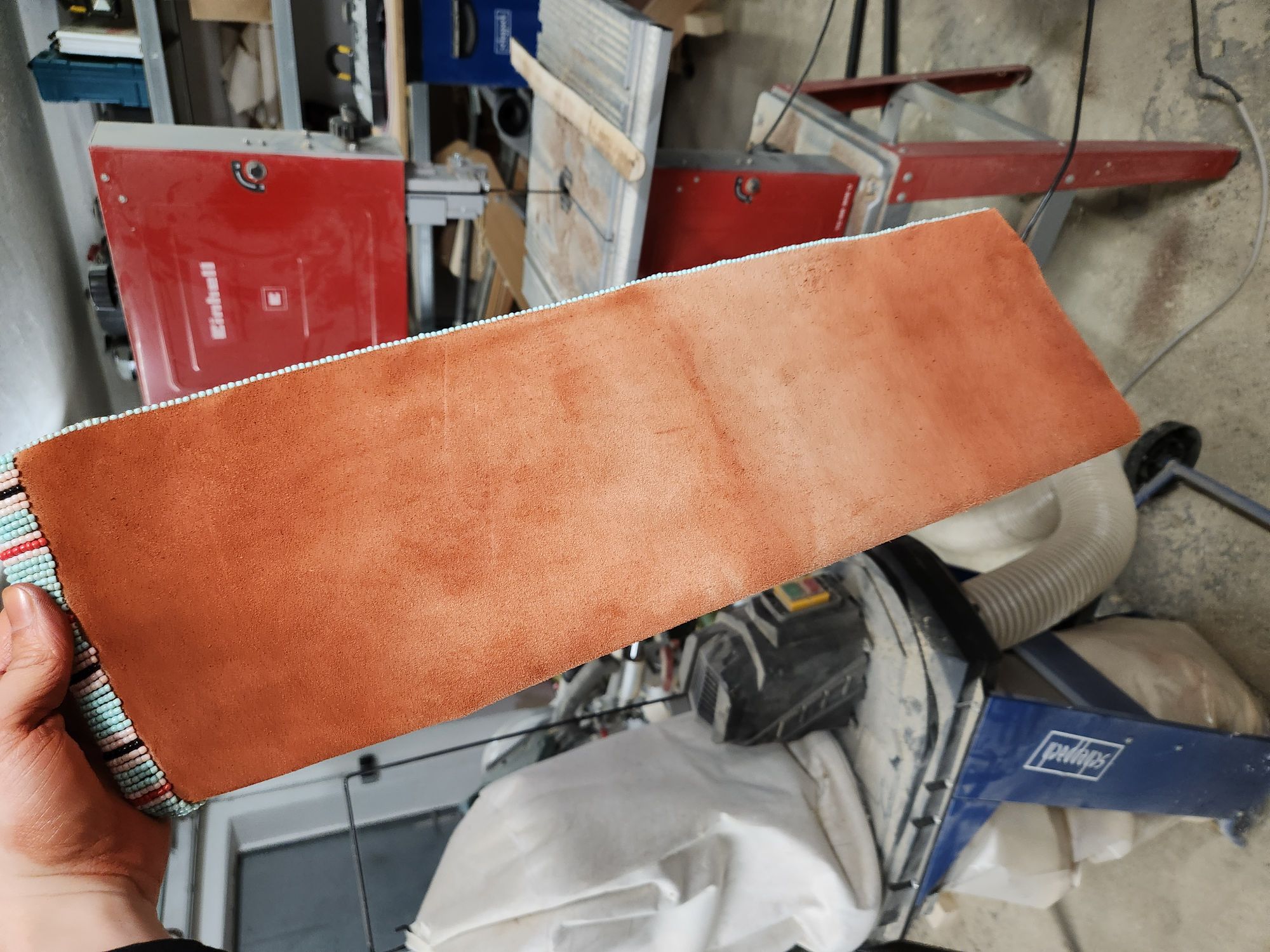Ich hab grad die Pigmente mit einem alten Pinsel ins Leder gerieben. Bin zufrieden mit dem Ergebnis. Die haften viel besser im Leder als ich erwartet habe. Und an den Händen