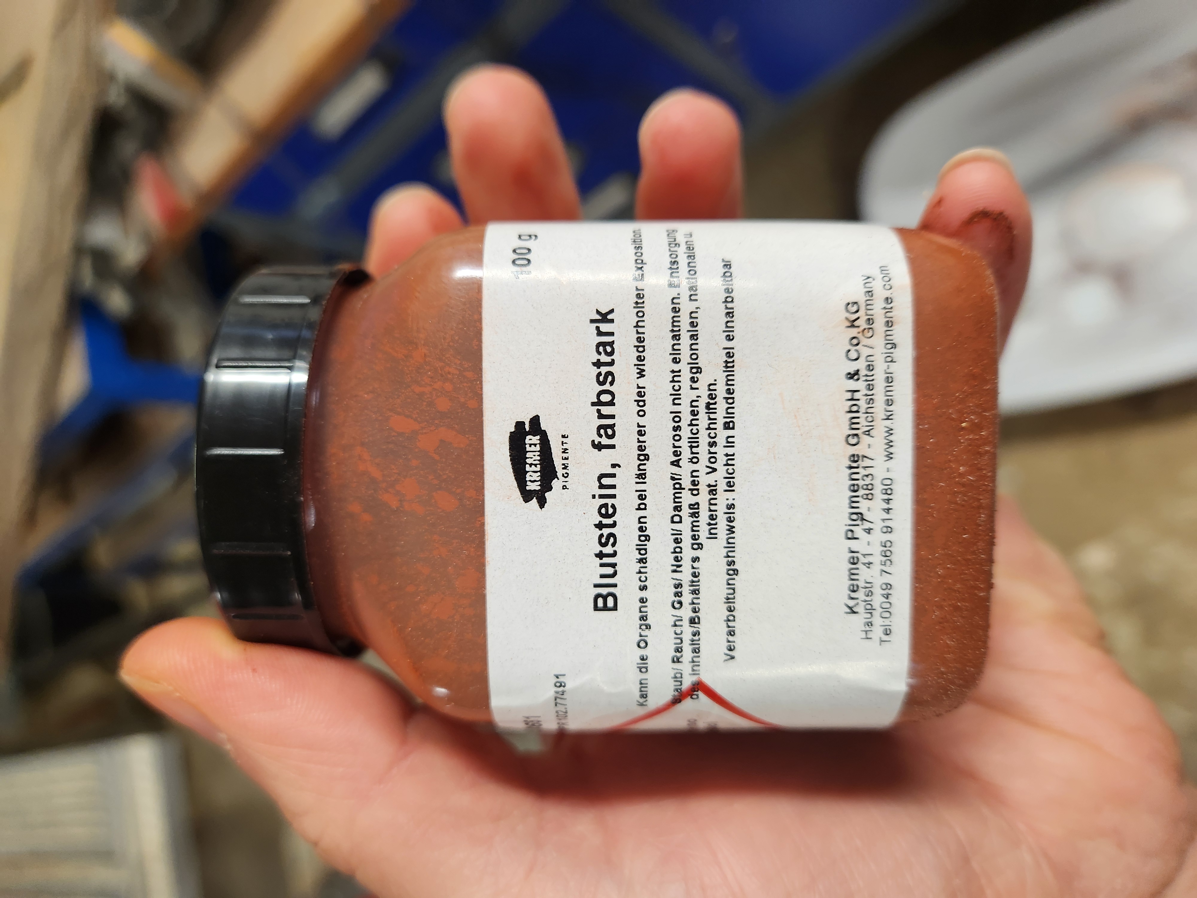 Als nächster Schritt wäre es wsl am besten den Köcher mit dem Pigmentpulver zu färben. Nur wird die weitere Arbeit dann schwieriger, da ich aufpassen muss, dass das Pigment nicht alles (unter anderem mich) einfärbt.