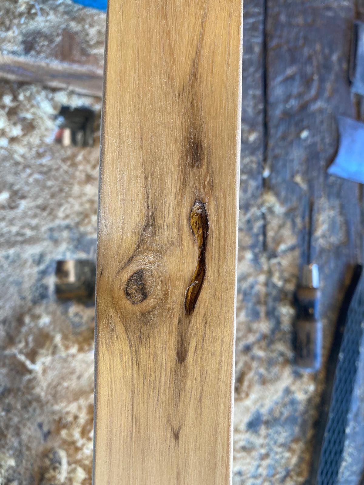 Hab heute den letzten Splintring vor dem Kernholz als Rückenring freigelegt. Wie befürchtet, sind je mehr ich mich dem Kernholz genähert habe, überwachsene Äste hervorgetreten. Insgesamt 8 Stück. Wenn ich nicht unter Beobachtung stehen würde, hätte ich mich wohl einem anderen Stave gewidmet ;) . Aber dieses Jahr gibts keinen Plan B.