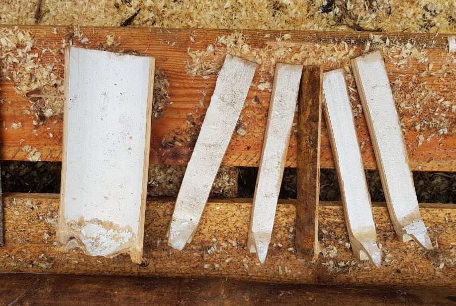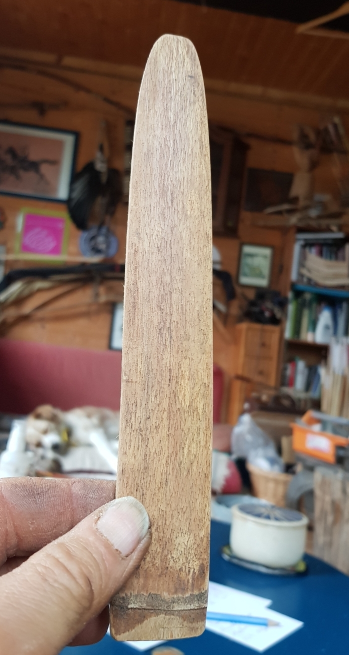 Die neuen Hasel Siyahs sind in Länge und Breite auf Endmaß aber noch nicht in ihrer endgültigen Form... diesmal mit durchgehenden äußeren Jahresringen, da der Birkenrücken nicht drüberlaufen wird..