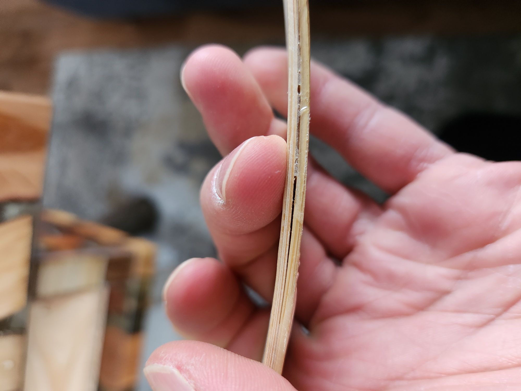 Heute hab ich beim Siyah den Spleiß perfekt eingepasst und dann noch beim Bambuskern die Aufdopplung verschliffen, dann fällt mir plötzlich das hier auf...