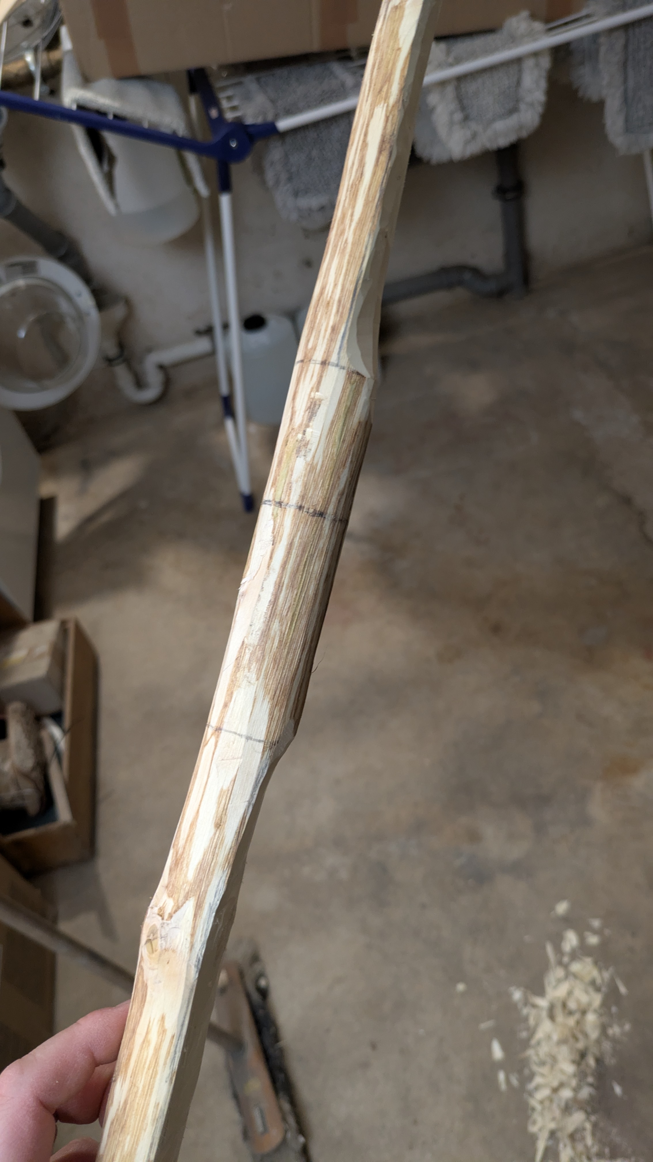 ich weiß dass der Bogen beim ersten Schuss brechen wird, spätestens beim zweiten. Ich habe aber nie so wirklich mit Holz gearbeitet, und mir geht's es auch erstmal darum das Material kennen zu lernen.