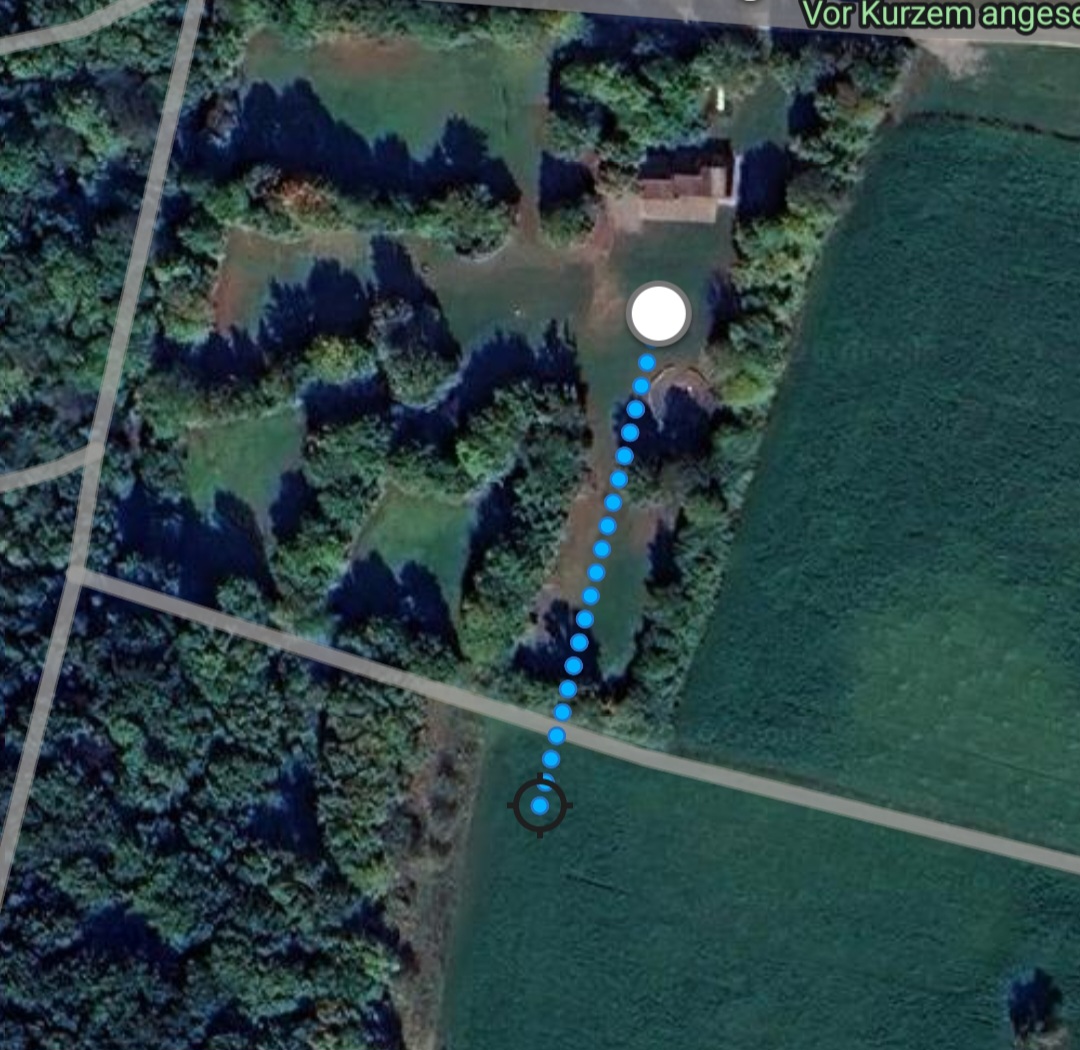 Ich hatte ihn in Neubrunn einem Jugendlichen zum Testen gegeben... und der hat ihn unterschätzt und viel zu hoch gehalten, ich schätze mal so ca 25 - 30° - Winkel, also noch nicht die 45°, die man zum absichtlichen Weitschuss halten würde... und hat diese Linie / Strecke geschossen: