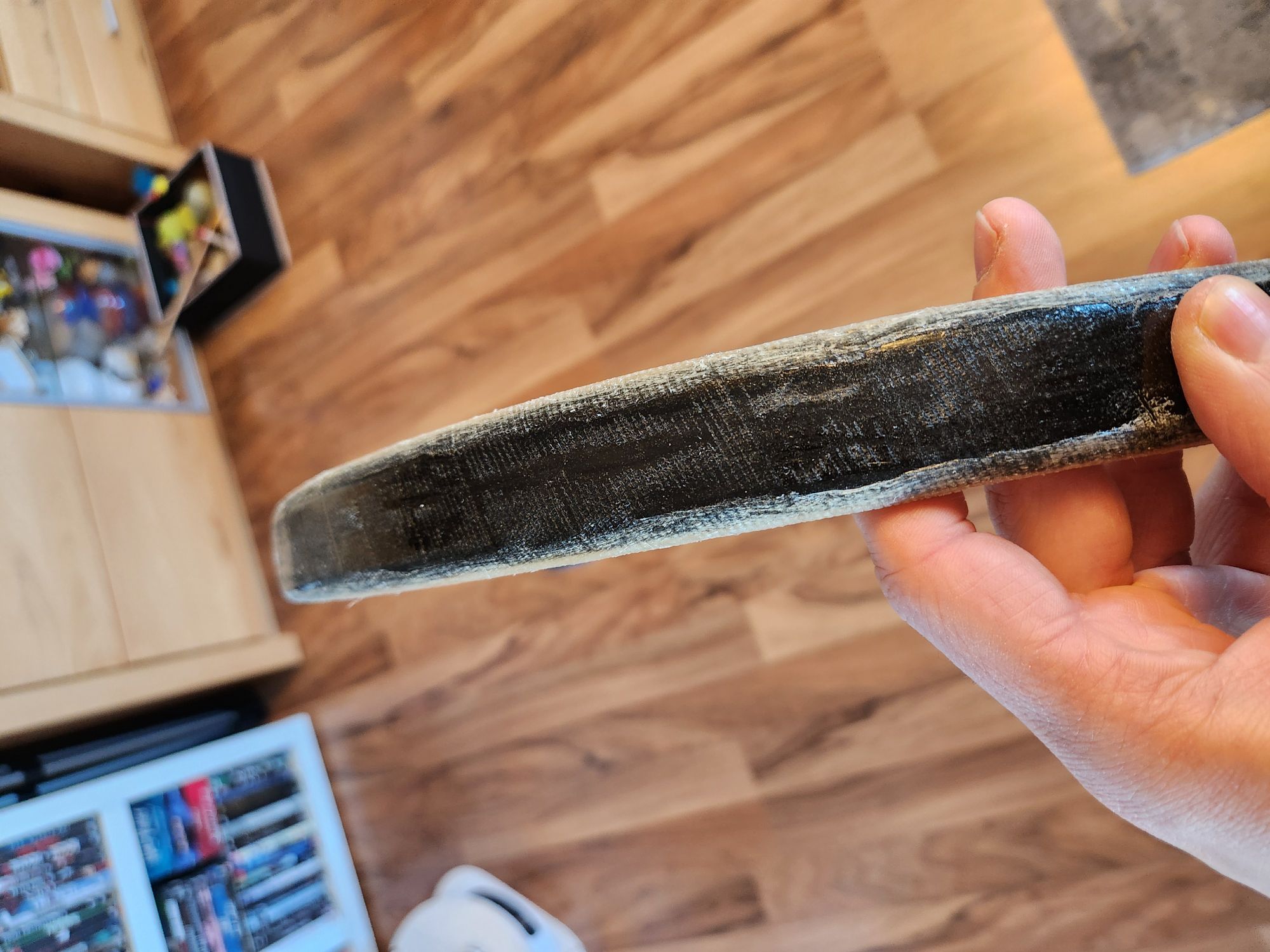 Wie schon mehrfach erwähnt könnten diverse Klebefugen verhungert sein. Außerdem sah eines der Hörner eigenartig aus. Als wären Blasen unter der Oberfläche. Den Biegetest hat es aber bestanden. Dann die winzigen Fehlstellen im Holz, das ich bei manchen Stellen nicht sicher bin ob alles im Winkel ist,... Die Liste ist lang. Aber ich glaube bei einem Komposit ist es nahezu unmöglich, keine Zweifel wegen irgendwas zu hegen.