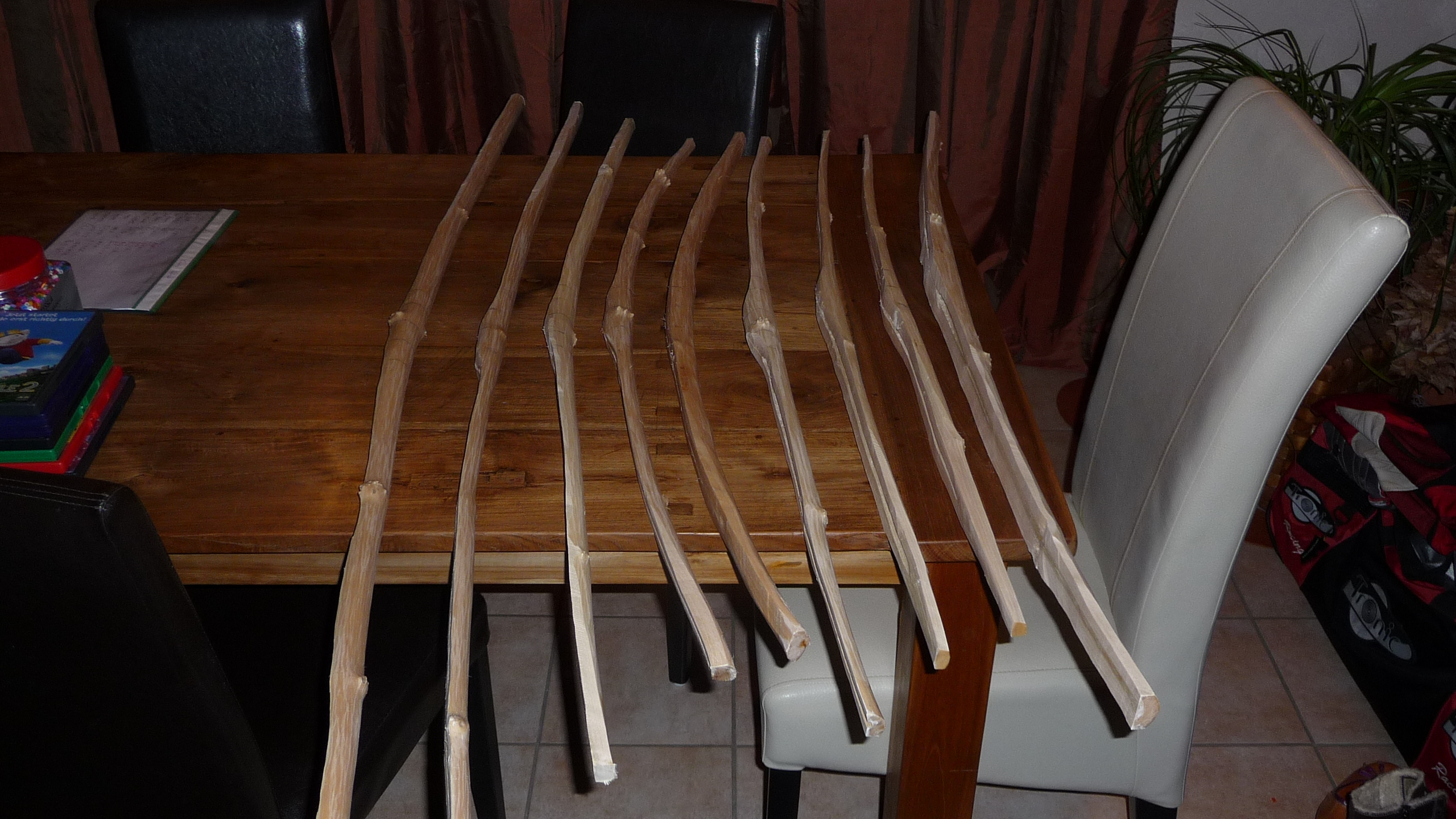 Naja, wenns um gespaltenes Holz geht....keine Ahnung, da gehe ich nicht nachzählen.Aber das sind keine angefangene Bogen für mich sondern trocknendes potentielles Bogenholz