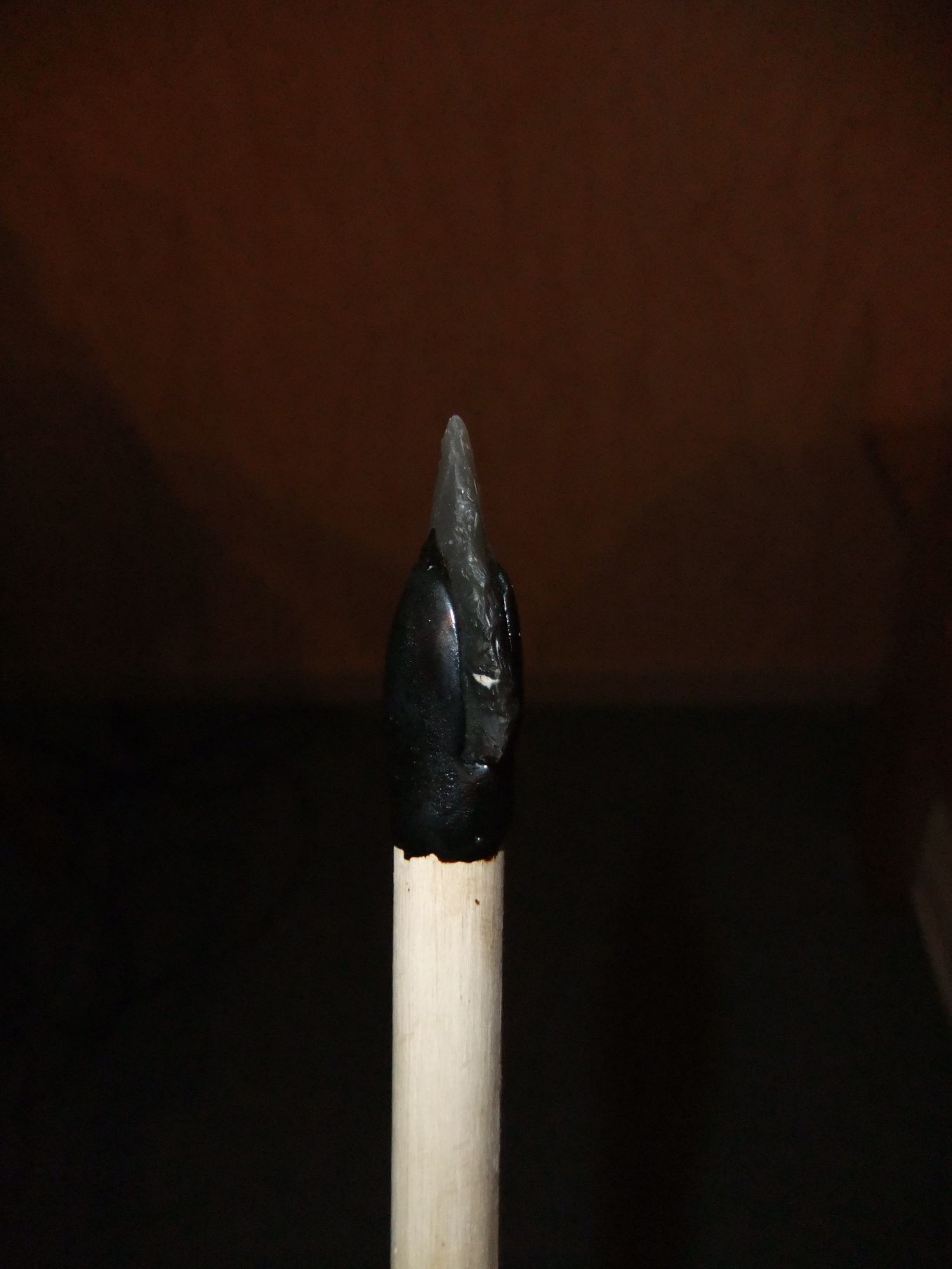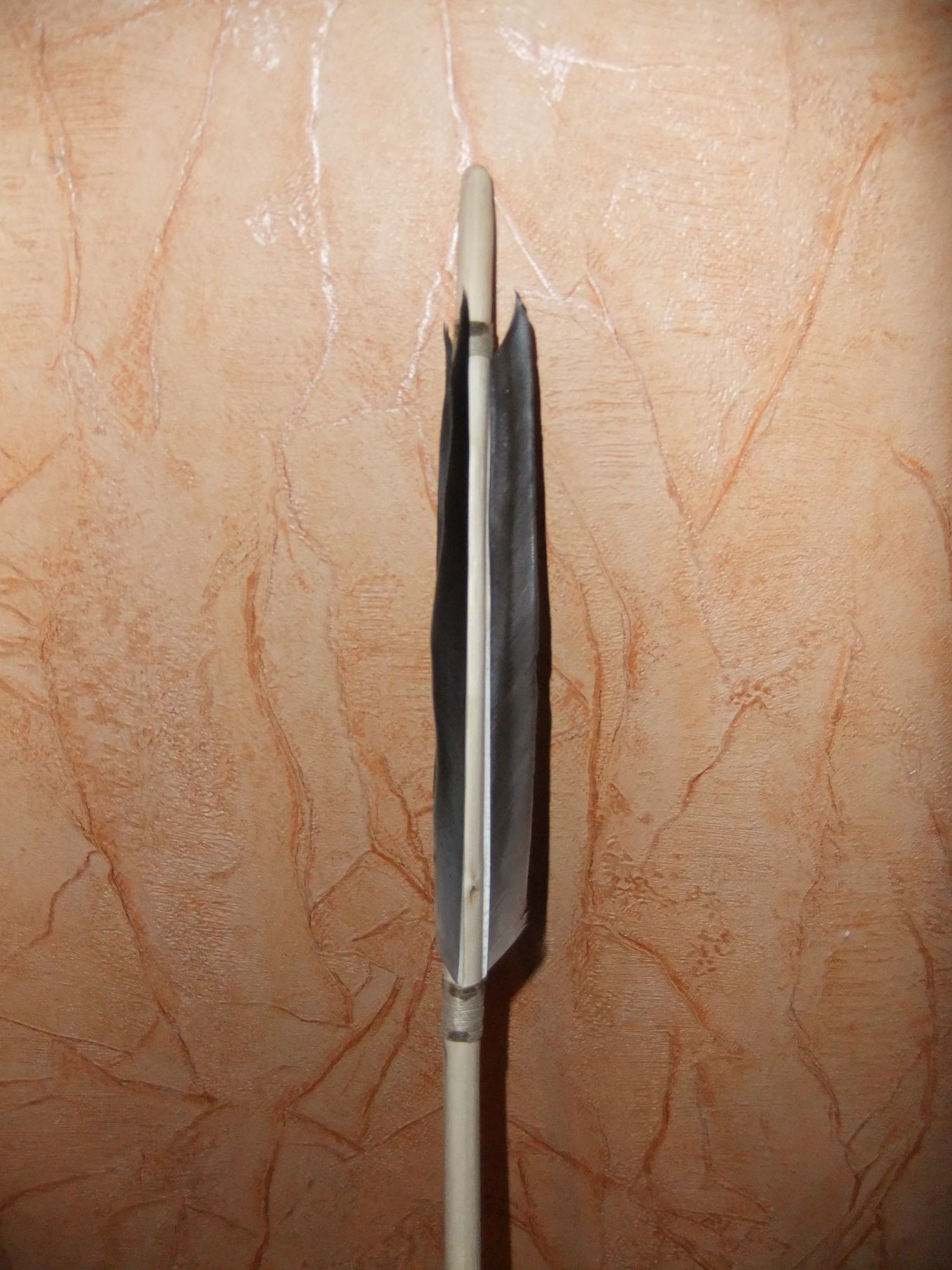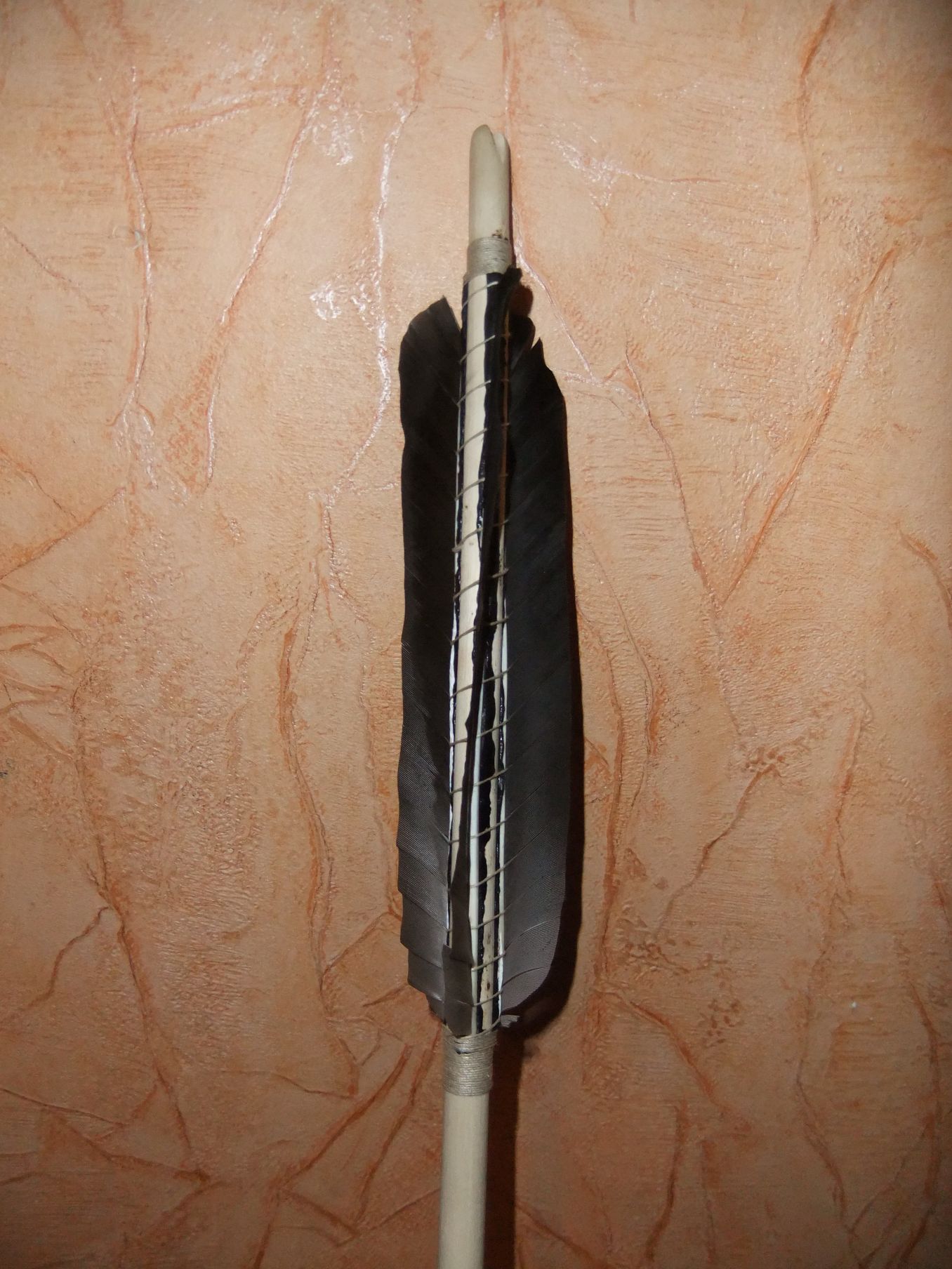 nein... unter der Spitze ist keine Wiklung... der Pfeil soll aber auch nicht geschossen werden, sondern nur rumstehen und gut aussehen ^^ Flintknapping habe ich mir in nem 2 wochen studuim über youtube beibringen können... macht unglaublich Spass, wenn man genau vorhersagen kann, wo was absplittert... oder ^^ ... oder auch nicht