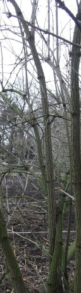 Auch ein Hartriegelchen musste dran glauben, Ziemlich dünn, ca. 4 cm. Muss aber morgen erst messen: