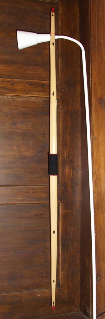 Bemalt mit Wasserfarbe , versiegelt mit Leinölfirnis , selfnock´s und recycling Ledergriff eines älteren Bogen .