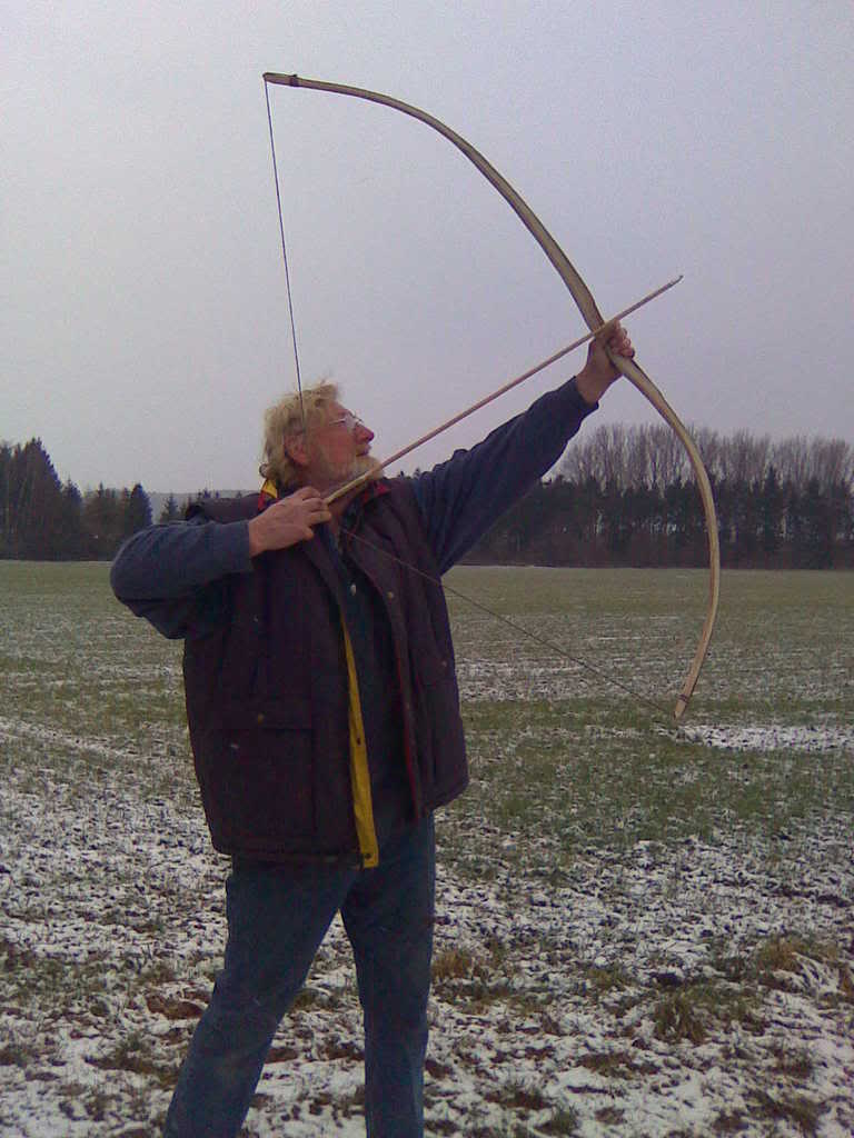 5. In der Regel macht man bei langen Bogen (über 1,60m) den Griff leicht nach unten versetzt.